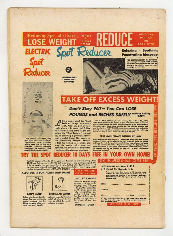 Ended Jul 15 2025 Winning Bid $160 Cover by Joe Maneely. Stories by Hank Chapman, Stan Lee and unknown. Art by Fred Kida, Bill Everett, Paul Reinman, Manny Stallman and Ed Smalle. "Skin-Deep" by Hank Chapman and Fred Kida - A man is attempting to do a face transplant from a corpse but his interfering wife is always getting underfoot by trying to help him in his endeavors. When she burns the skin that he has harvested off the corpse in her attempt at cleaning up around the place, he fixes her wagon by transplanting the corpse's head onto her shoulder. Also in this issue: 2-page text story "The Vault of Doom"; "The Monster Maker!" with art by Bill Everett - A statue maker falls in love with one of his statutes and finds a black magic spell that transmutes him into stone; "The Man Who Believed in Ghosts" with art by Paul Reinman - A man who lives next to a cemetery is not frightened of the ghosts which show up every night until he meets his own; "Skeleton in the Closet" with art by Manny Stallman - A rich man marries into a family of freaks; and "The Man Who Melted" by Stan Lee and Ed Smalle - A forgetful inventor shoots his wife for testing his serum that will allow him to melt away and commit the perfect crime, but he forgets to devise a way to return himself to normal. 32 pages, full color. Cover price $0.10. Grade: GD+ 2.5 explanation of grade Condition: Used (collectible)