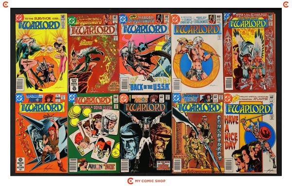Issues 50-59 of Warlord (1976 1st Series DC). Most issues will grade in the VG to FN range.