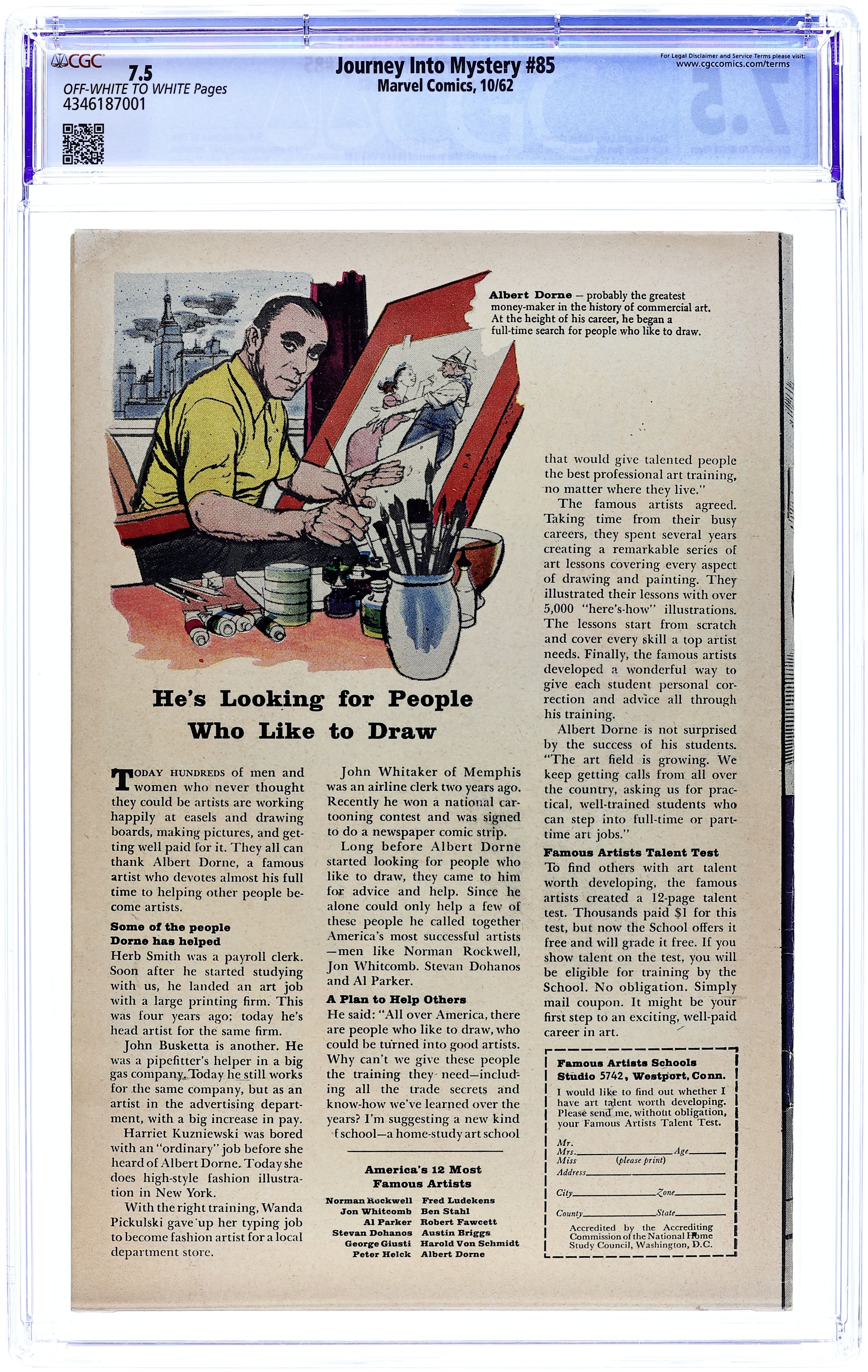 Tags: Marvel Legacy Numbering: Thor (part 85), ThorThor (1962 Marvel 1st Series Journey Into Mystery) 85 CGC 7.5