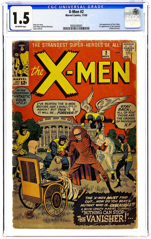 Cover pencils by Jack Kirby, inks by Paul Reinman. No One Can Stop the Vanisher starring Professor X, The Angel, The Beast, Cyclops, Marvel Girl [Jean Grey], Iceman, The Vanisher (first appearance), and Special Agent Fred Duncan, script by Stan Lee, pencils by Jack Kirby, inks by Paul Reinman; The X-Men face a new foe: The Vanisher! 36 pgs. $0.12. Cover price $0.12. Grade: CGC 1.5 explanation of grade Condition: Used (collectible)