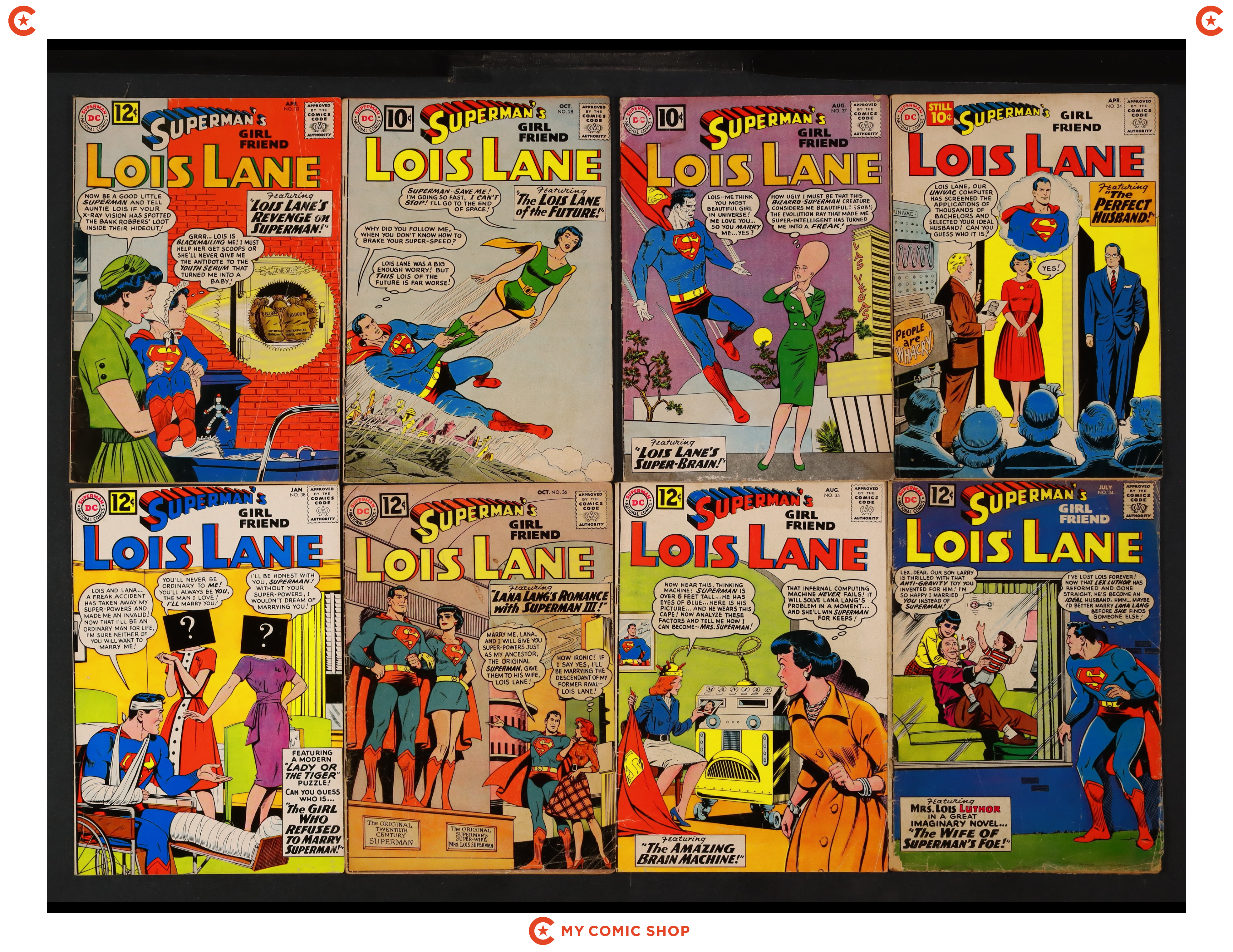 Issues 24, 27, 28, 32, 34-36, 38 of Superman's Girlfriend Lois Lane (1958). Most will grade in the FR to GD range with 38 grading VG.