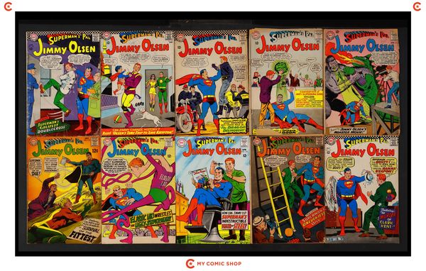 Issues 84, 87, 91, 101-103, 106, 110, 111, 115 of Superman's Pal Jimmy Olsen (1954). Most will grade in the FR to GD with #110 grading FN.