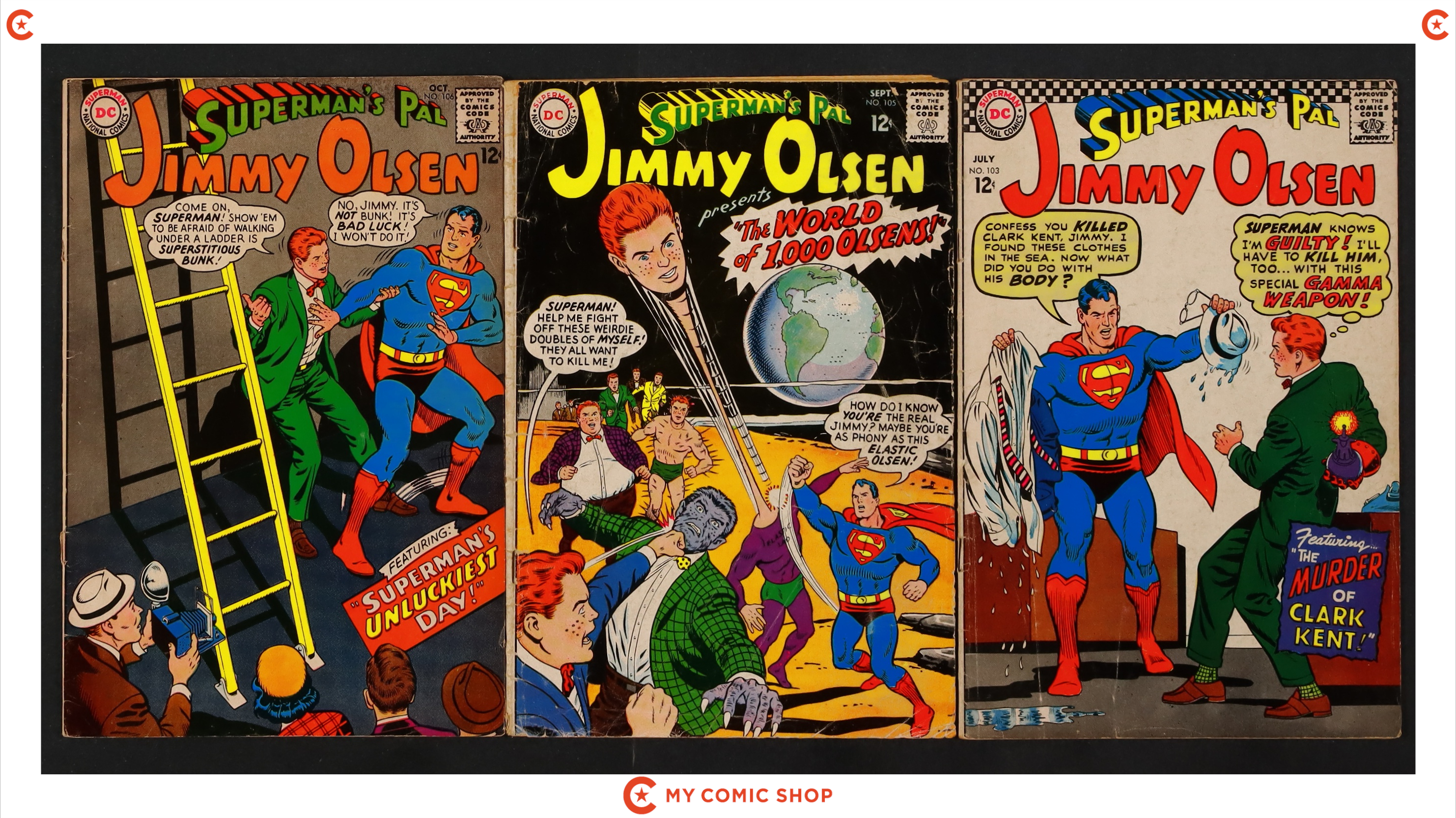 Issues 91, 92, 95, 99, 101-103, 105, 106 of Superman's Pal Jimmy Olsen (1954). Most will grade in the GD to VG range.