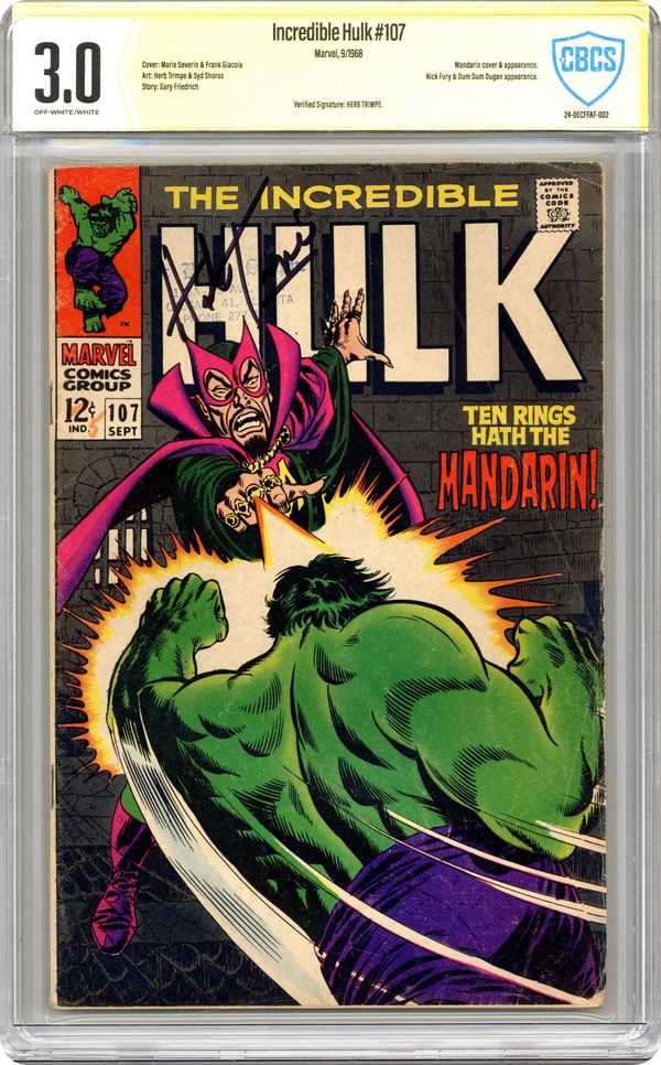 Tags: Marvel Legacy Numbering: Hulk (part 107), HulkIncredible Hulk (1962 Marvel 1st Series) 107 CBCS 3.0 Verified Sig Trimpe