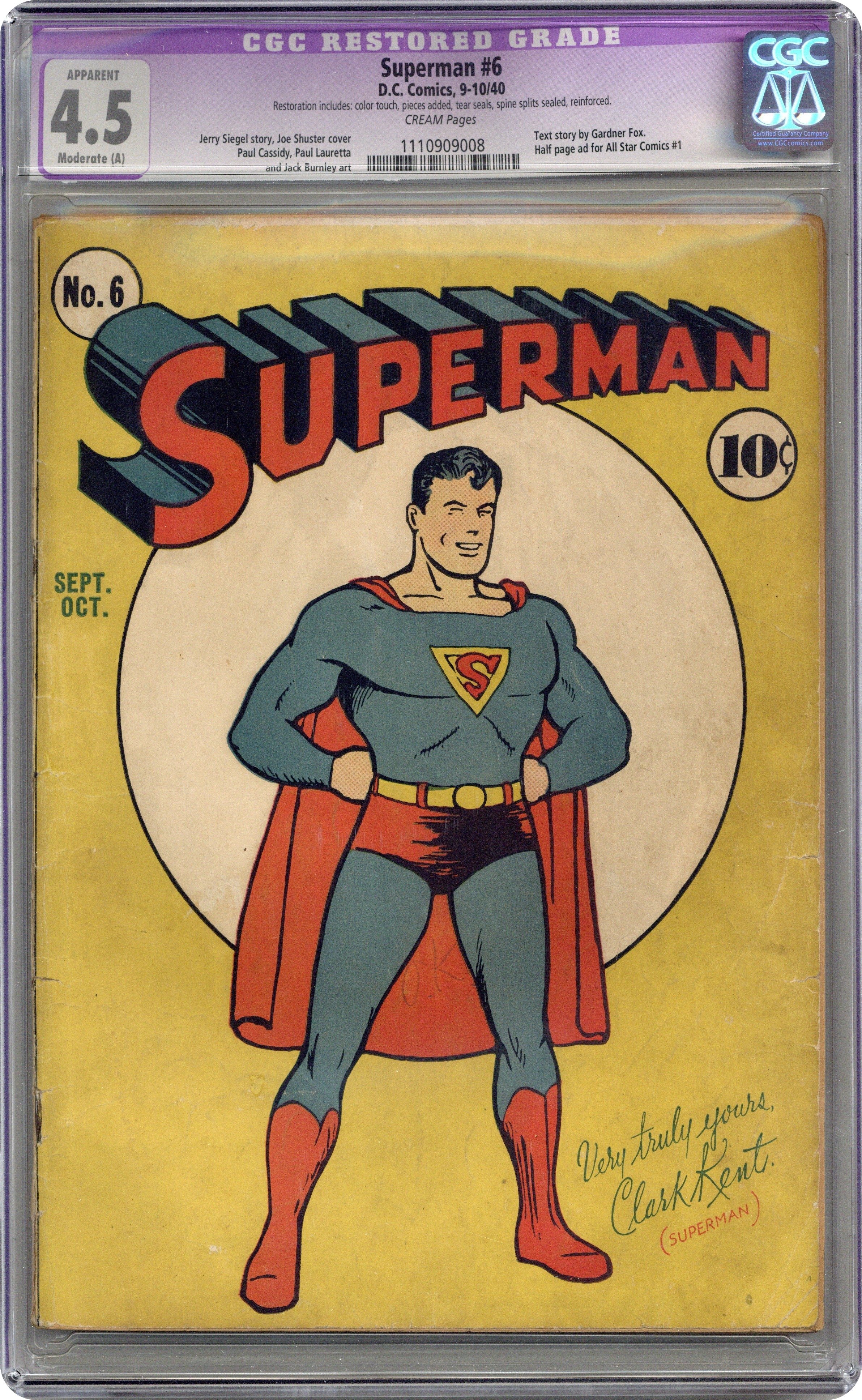 Superman (1939 1st Series) 6 CGC 4.5 Restored