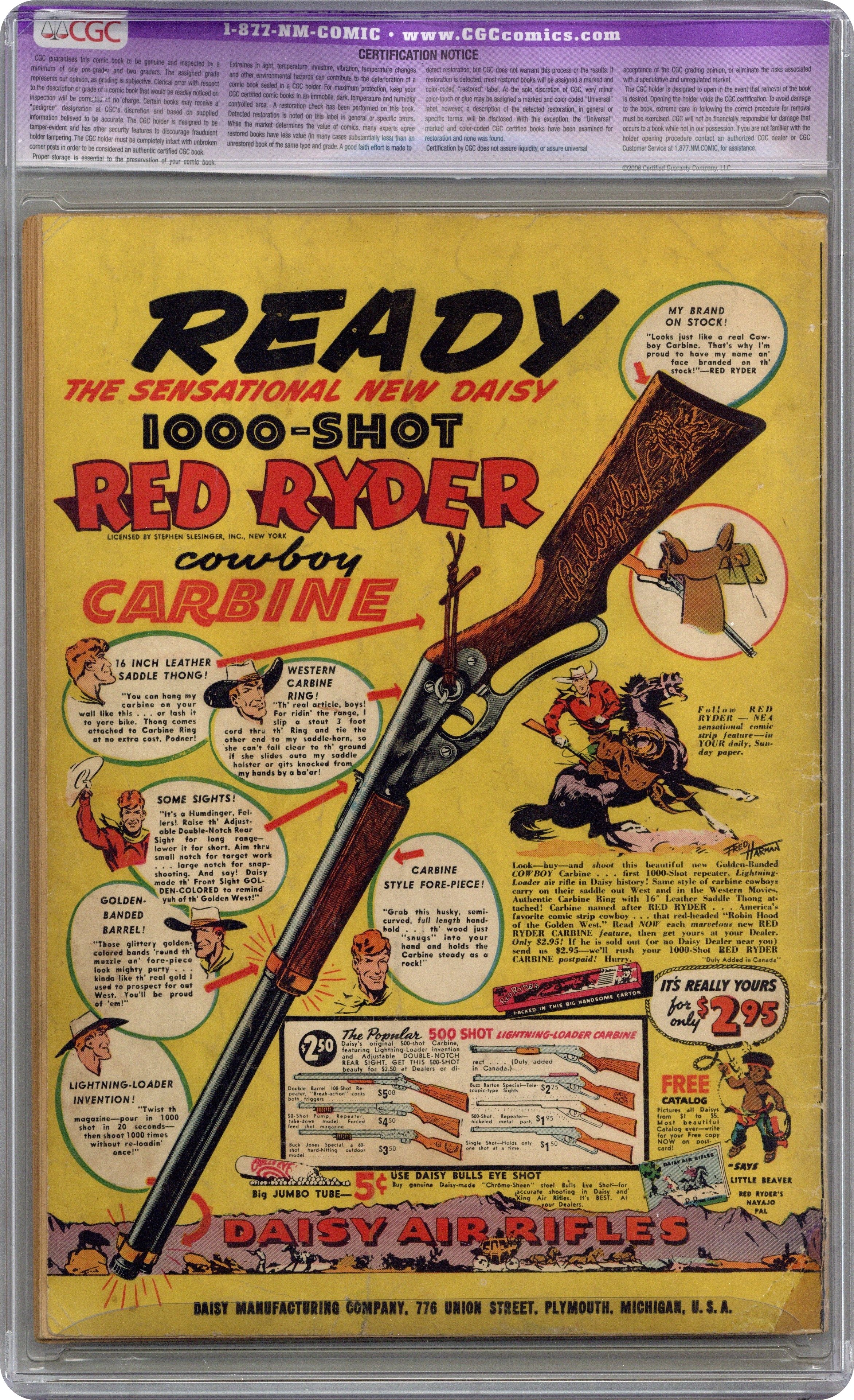 Cover pencils by Joe Shuster, inks by Paul Cassidy. Features the 1st splash page in a superman comic. Untitled Superman story, script by Jerry Siegel, art by Paul Cassidy [as Joe Shuster]; When Lois is found at the scene of the murder of a noted jewel collector, she is arrested for that murder. Supermen of America club info. Too Big For Marbles text story, script by George Shute, art by Don Komisarow. Untitled Superman story, script by Jerry Siegel, art by Paul Cassidy [as Joe Shuster]; Brute Bashby and his thugs roll into the town of Gateson with the sole purpose of establishing a protection racket, which means each shop owner must fork over 10% of their profits. Super Strength activity page, script by Jerry Siegel, art by Jack Burnley. Untitled Superman story, script by Jerry Siegel, pencils by Paul Cassidy [as Joe Shuster], inks by Cassidy and Paul Lauretta [both as Joe Shuster]; Relief efforts to help the tornado and earthquake ravaged South American nation of San Caluma head out by boat hit a snag when an aircraft carrying the relief commission officials nearly crashes. The Strangest Case text story, script by Gardner F. Fox, art by Don Komisarow. Sports Close-Ups! fact page by Jack Burnley. Untitled Superman story, script by Jerry Siegel, pencils by Paul Cassidy [as Joe Shuster], inks by Cassidy and Paul Lauretta [both as Joe Shuster]; When a department store collapses and the head of the construction firm that erected it is slain, Clark Kent smells a story in the making. 68 Pages, Full Color. Cover price $0.10. Grade: CGC 4.5 explanation of grade Condition: Used (collectible)