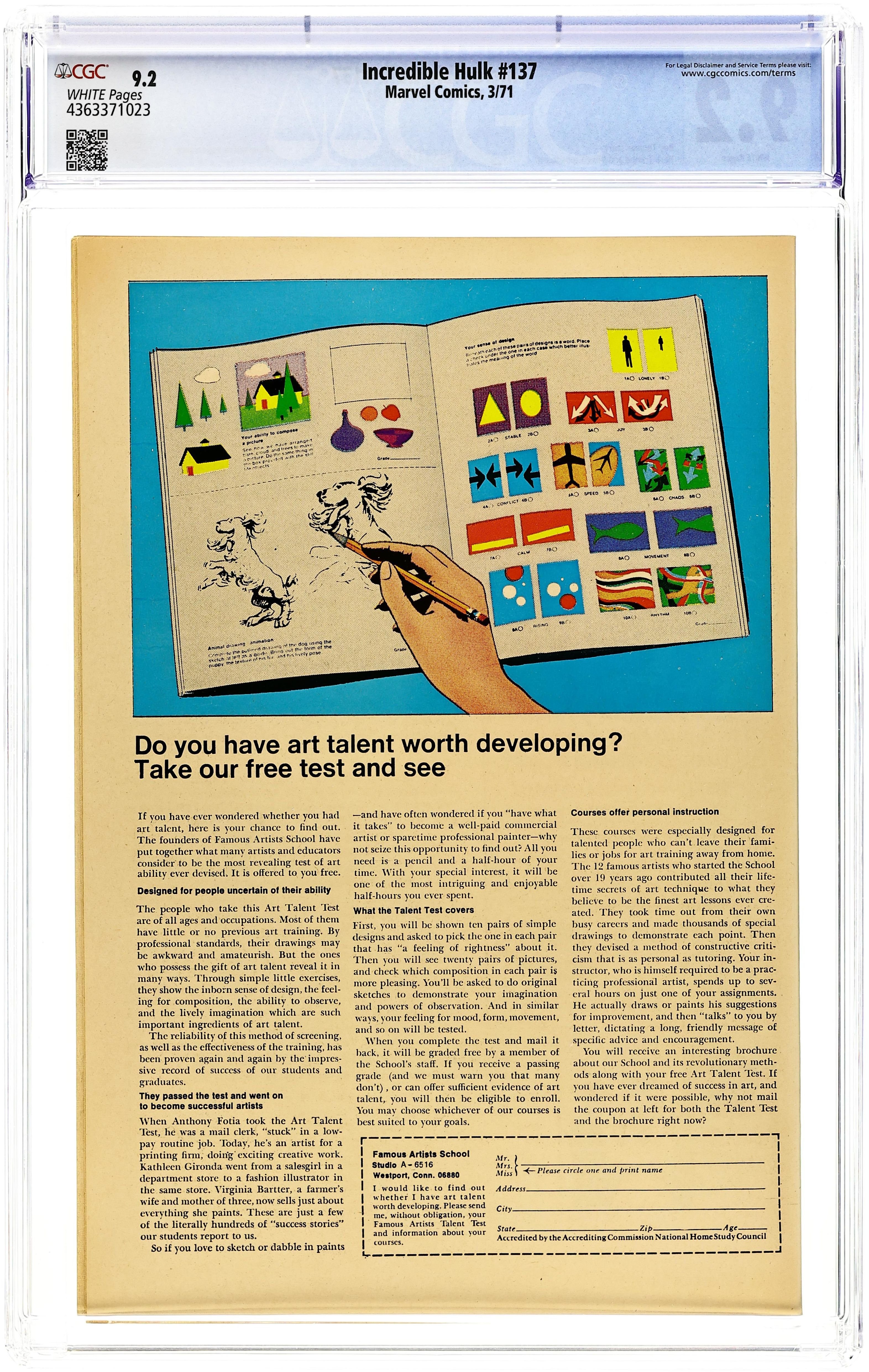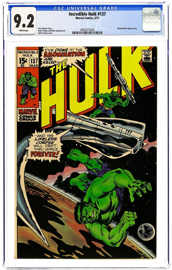 Tags: Marvel Legacy Numbering: Hulk (part 137), HulkIncredible Hulk (1962 Marvel 1st Series) 137 CGC 9.2
