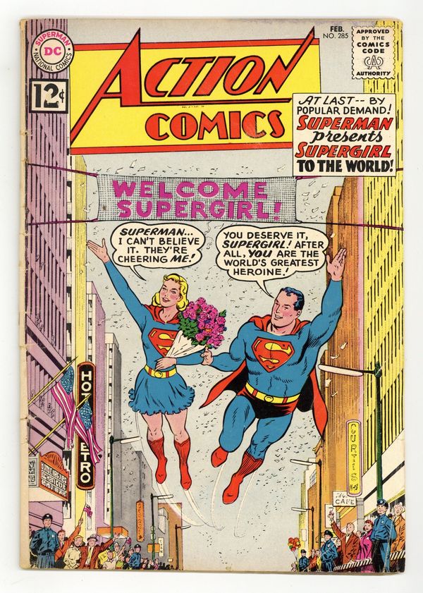 Cover pencils by Curt Swan, inks by George Klein. "The World's Greatest Heroine!, Part 1", script by Jerry Siegel, art by Jim Mooney; Superman reveals Supergirl to the world; President John F. Kennedy appearance; Jackie Kennedy cameo. One-page Little Pete story by Henry Boltinoff. "The Infinite Monster!, Part 2", script by Jerry Siegel, art by Jim Mooney; Supergirl stops a creature from another dimension in her first solo adventure after Superman revealed her to the world. 36 Pages, Full Color. $.12 Cover price $0.12. Grade: GD+ 2.5 explanation of grade Condition: Used (collectible)