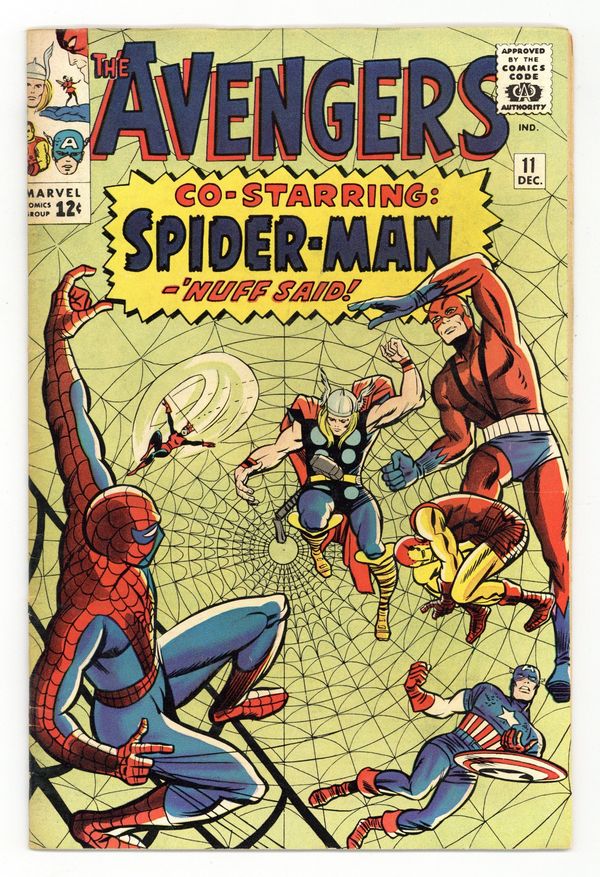 Ended Jun 24 2025 Winning Bid $185 Cover pencils by Jack Kirby, inks by Chic Stone. The Mighty Avengers Meet Spider-Man, script by Stan Lee, pencils by Don Heck, inks by Chic Stone; Kang creates a robotic Spider-Man and sends him back in time to battle the Avengers. Roster: Captain America, Thor, Giant-Man, Wasp, and Rick Jones. Guest stars the Amazing Spider-Man. Villain: Kang. Cameo appearances by Zemo, the Executioner, Wonder Man, Dr. Doom, Magneto, Mysterio, the Unicorn, and Kraven the Hunter (all in Kang's files). Kang pin-up. 36 pgs. $0.12. Cover price $0.12. Grade: GD/VG 3.0 explanation of grade Condition: Used (collectible)