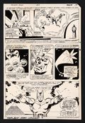 A fantastic villain origin page for the former Egyptian wizard now known as the immortal Sphinx! The Sphinx Reed and the rest of the FF are in dire straits while recovering from a battle with the Skrulls so they're forced to turn to the only being powerful enough to take on The Sphinx- Galactus! While the World-Eater and his herald make their way to the showdown, The Sphinx stands in front of the pyramids (likely place for him to be) and ponders on his origins. Some great panels here, especially the 5th panel which sees the villain begin to put his plan into motion with some Kirby Krackle! Signed by writer Marv Wolfman in bottom margin. Pencil and ink on Marvel Comics art board. 10 1/2" x 15 3/4". NOTE: Two lines of dialogue from this page "was once a face--" and "once called Xandar" are edits where the original lettering was cut out and the new lines placed in and secured with tape on the reverse.