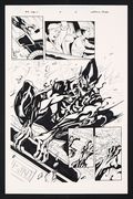 A fantastic splash that gives the Red Goblin the hero spotlight he's finally earned! After bonding with the symbiote named Rascal, Normie Osborn has been having trouble controlling the symbiote's base urge to, ya know, eat people. In this final issue, the collateral damage during a fight with his friend Venom (Dylan Brock) convinces the child and the symbiote to join the side of angels as he leaps into action to save some civilians. Ink over printed pencils on Marvel Comics art board. 11" x 17".