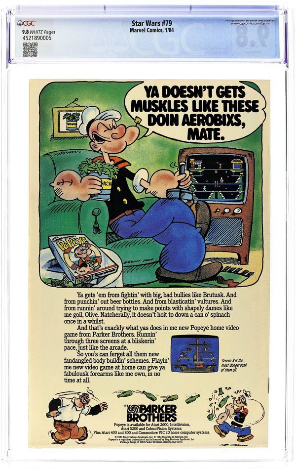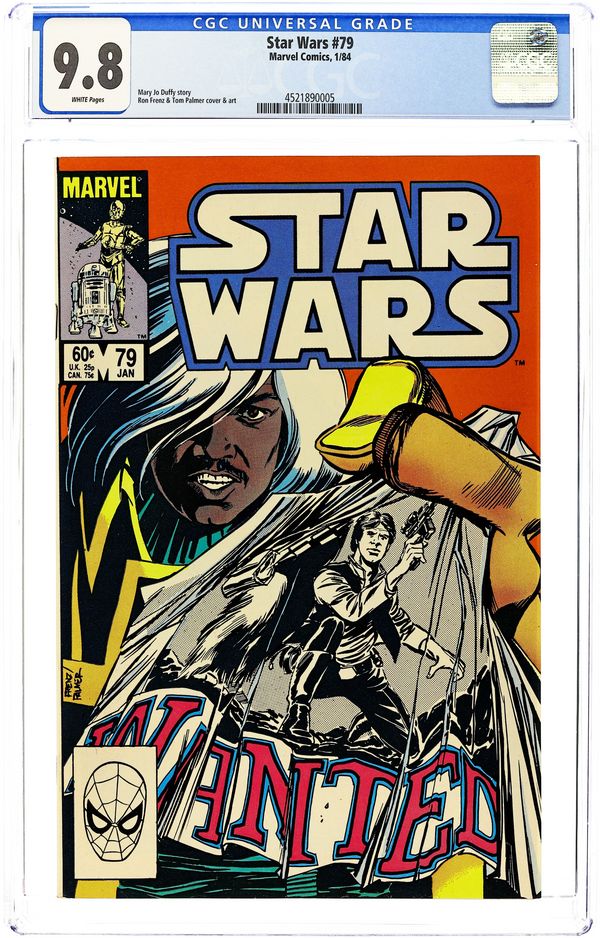 It's madcap mayhem as Lando and Chewie infiltrate a gang in order to find Han Solo's location in "The Big Con". Script by Jo Duffy, breakdowns by Ron Frenz, finishes by Tom Palmer. Frenz/Palmer cover. Cover price $0.60. Grade: CGC 9.8 explanation of grade Condition: Used (collectible)