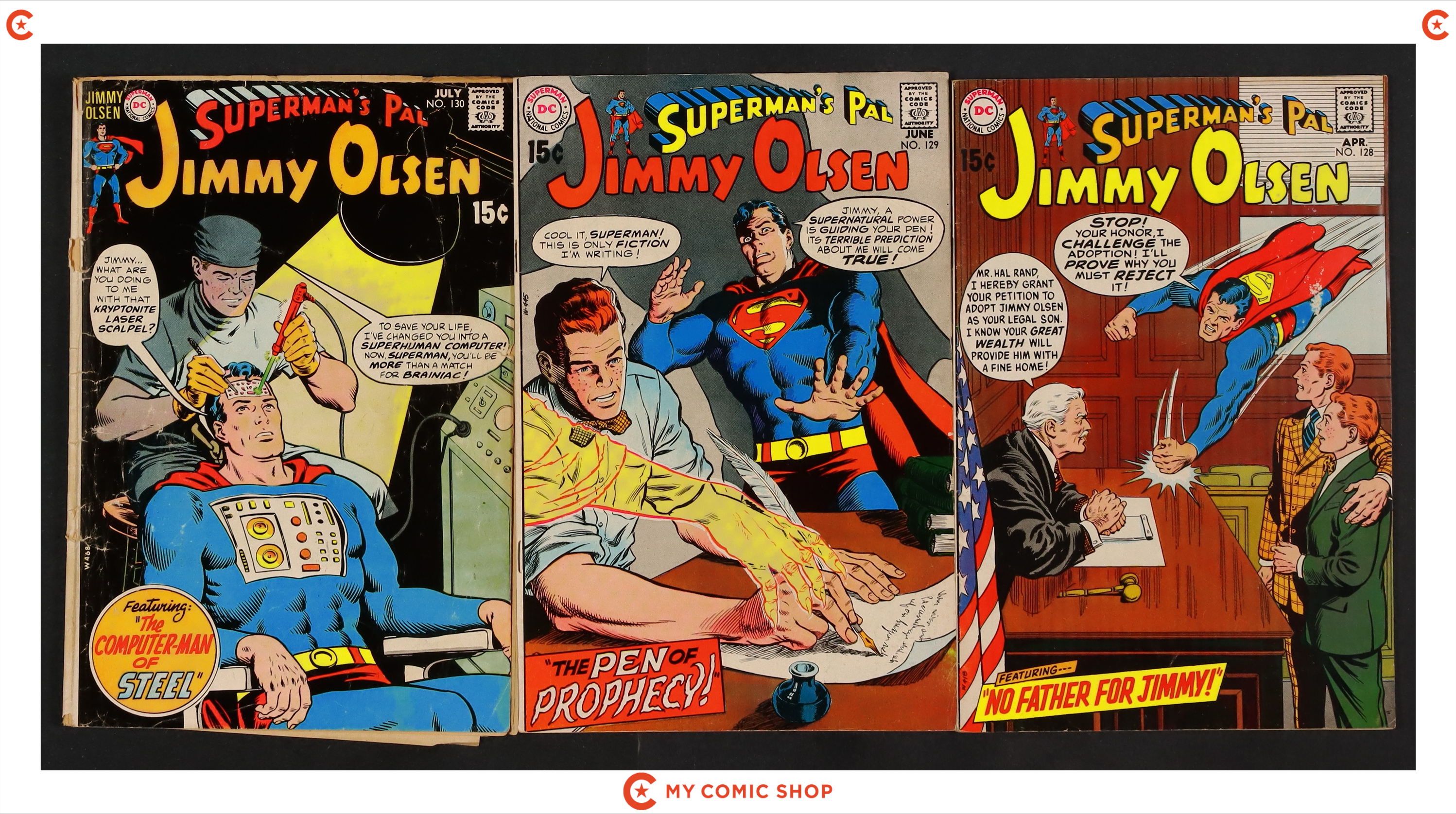 Issues 119, 120, 122-124, 127-130 of Superman's Pal Jimmy Olsen (1954). Most would grade in the GD to VG range.