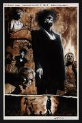 An absolutely incredible splash page that revisits one of the most iconic (and creepy) moments from the Doll's House arc of the original Sandman series! Reborn in this new series, The Corinthian recalls his last moments before being unmade at the Cereal Convention, which was in actuality a convention for serial killers. Campbell's technique is just astounding here from the smudging used to give Morpheus a glow to the beautiful linework that plays wonderfully with the painted background. Signed by the artist in lower margin. Mixed media on heavy art stock. 11" x 17".