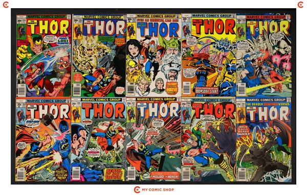Issues 260-269 of Thor (1962 Marvel 1st Series Journey Into Mystery). Most will grade in the FN range.