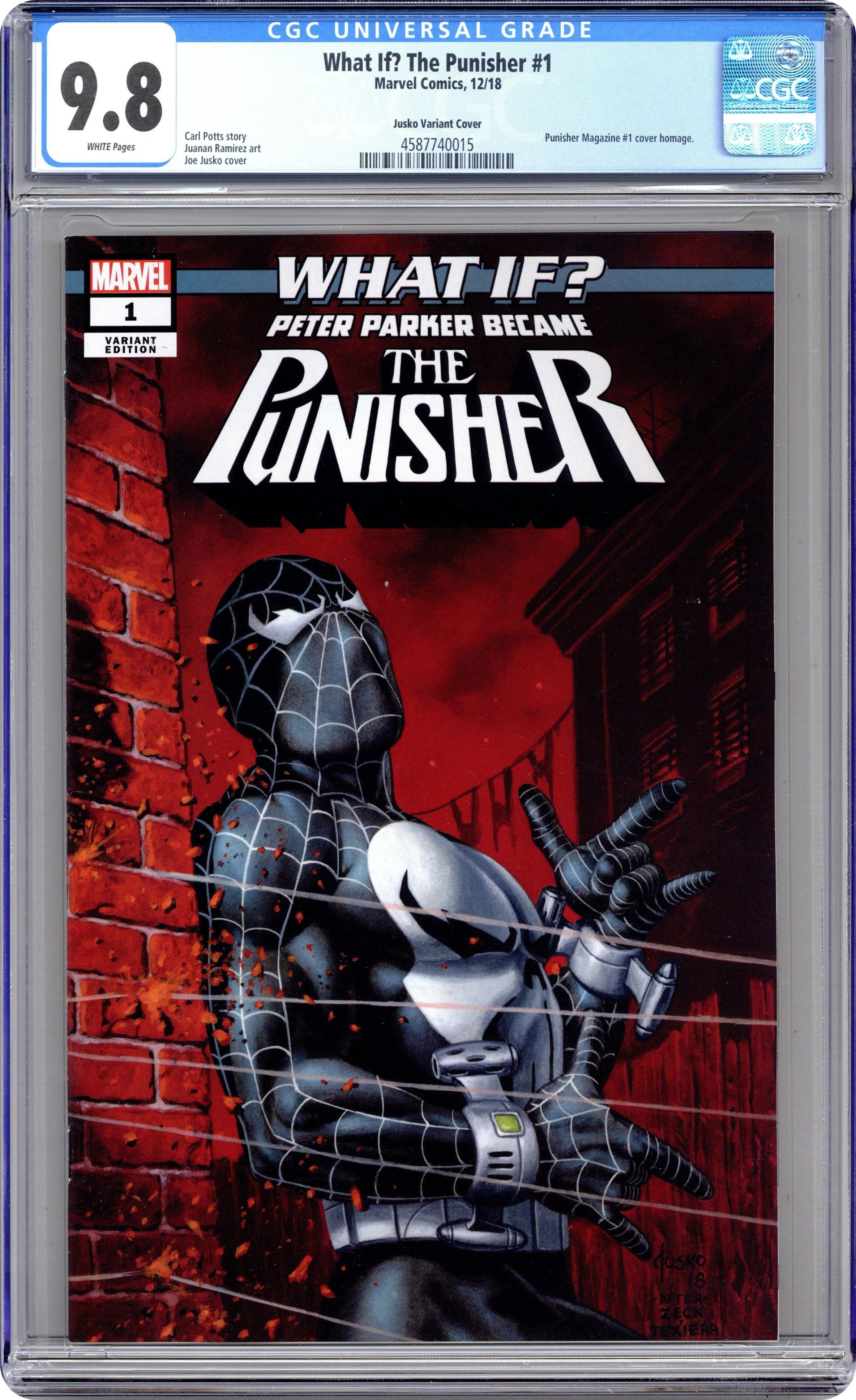IGC Store exclusive cover by Joe Jusko - Limited to 600 copies. Written by Carl Potts. Art by Juanan Ramirez. WITH GREAT POWER… When Peter Parker's Uncle Ben is ruthlessly killed by a burglar Peter let escape, he vows to never let the same fate befall another innocent bystander. From then on, he stands as a figure of cold retribution. Criminals beware - the guilty caught in this spider's web will be PUNISHED. But will Parker stand triumphant…or shattered by this twist of fate? The friendly neighborhood takes a different turn in this WHAT IF? adventure, positing a very different sense of responsibility for the man who will be known as THE PUNISHER, as his battles against villains like the GREEN GOBLIN take a new path! 28 pages, full color. Rated T+ Cover price $3.99. Grade: CGC 9.8 explanation of grade Condition: Used (collectible)