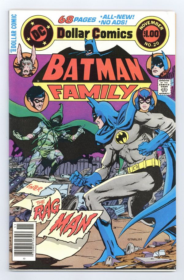 Final issue of the series. Giant-size issue. All-new. Batman's origin is retold and Ragman co-stars in "Enter the Ragman!" Script by David V. Reed, pencils by Michael Golden, inks by Bob Smith. Robin and Batgirl team up in "Peril of the Power Sower!" Script by Bob Rozakis, pencils by Don Heck, inks by John Celardo. Appearances by the Elongated Man and Red Tornado. Man-Bat stars in "Private Eye Man-Bat!" Script by Rozakis, pencils by Golden, inks by Joe Rubinstein. The Huntress stars in "Trial by Fire!" Script by Paul Levitz, pencils by Joe Staton, inks by Bob Layton. Jim Starlin wrap-around cover. Cover price $1.00. Grade: VF- 7.5 explanation of grade Condition: Used (collectible)