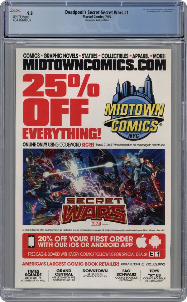 Deadpool's Secret Secret Wars (2015) 1C CGC 9.8