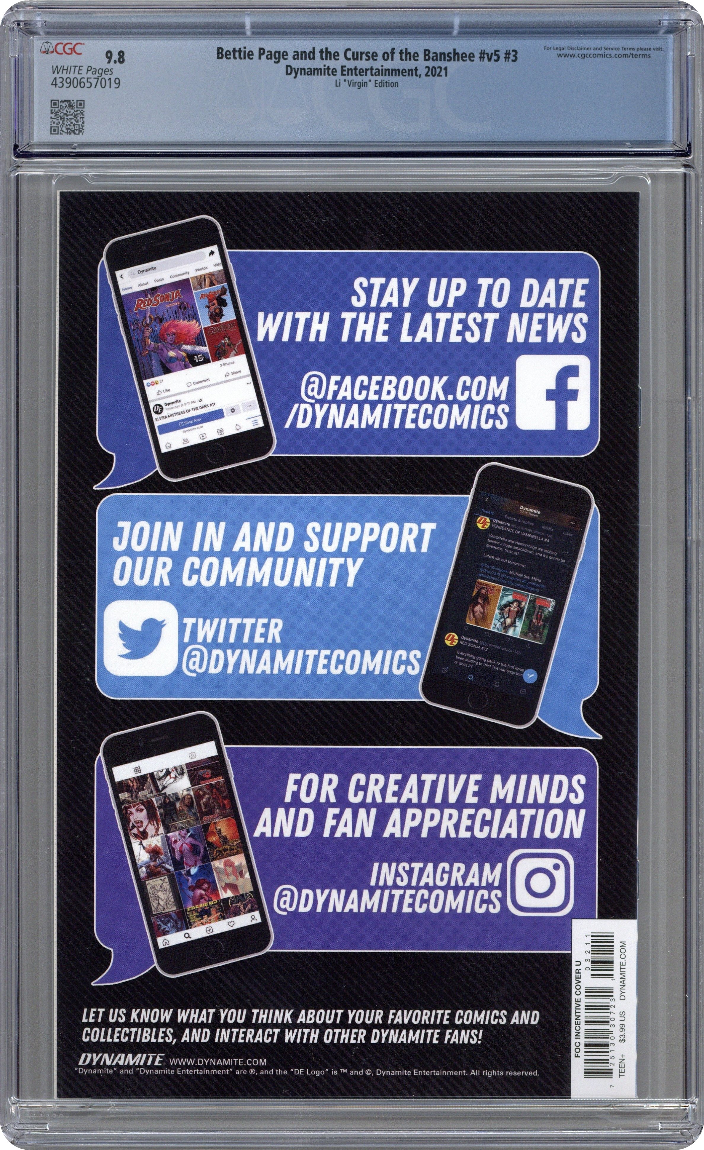 Published Aug 2021 by Dynamite Entertainment.Bettie Page The Curse of the Banshee (2021 Dynamite) 3U CGC 9.8 Li Virgin 1:21 Variant