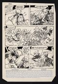 You'd be hard pressed to find a better introduction to Sergio Aragones' Groo than this opening page which finds the barbarian stumbling upon a massive battle and trying to pick a side! Aragones' pages are always packed with detail and energy and this is not exception from the intricately designed armor of the White and Black Helmet soldiers to Groo's entry into the fray in the final panel. Also included is a copy of the published issue. Pencil and ink on Marvel Comics art board. 11" x 16 1/4".