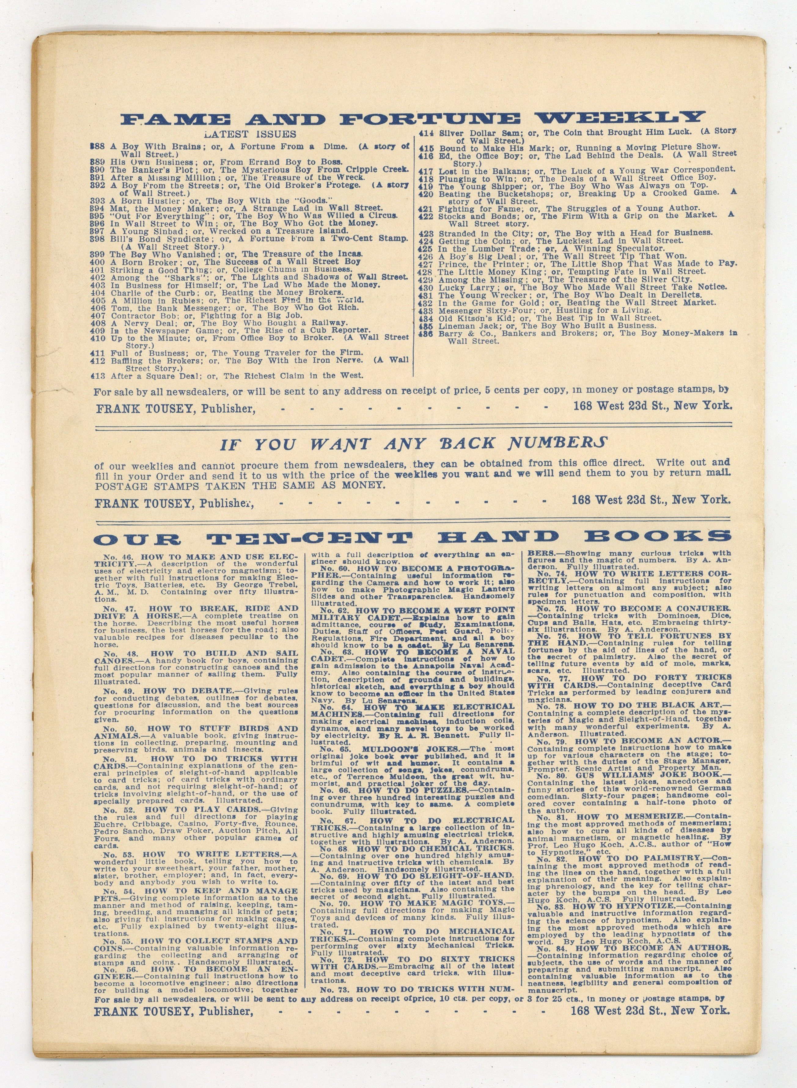 Published Jan 1914 by Frank Tousey.Fame and Fortune Weekly (1905-1928 Frank Tousey) 434 GD/VG 3.0