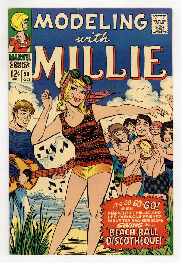 Ended Jun 17 2025 Winning Bid $70 Cover pencils by Stan Goldberg, inks by John Tartaglione. Beach-Ball Discotheque!, script by Denny O'Neil [as Denny-O], pencils by Stan Goldberg, inks by Frank Giacoia; Mr. Hanover opens a disco on the beach and asks the models to perform as dancers; But their nemesis Katen Sharp opens a competing club and threatens to drive Hanover out of business, until Millie discovers a new singer that everyone wants to hear. Through History With Millie! fashion page; Millie dressed as Annie Oakley. Millie's Swinging Super Sportswear paper doll page. Jill's Various Vogues fashion page. Advertisement for the Marvel Super-Heroes animated television series (1966). Millie's Modeling Tips fashion page. 36 pgs. $0.12. Cover price $0.12. Grade: FN+ 6.5 explanation of grade Condition: Used (collectible)