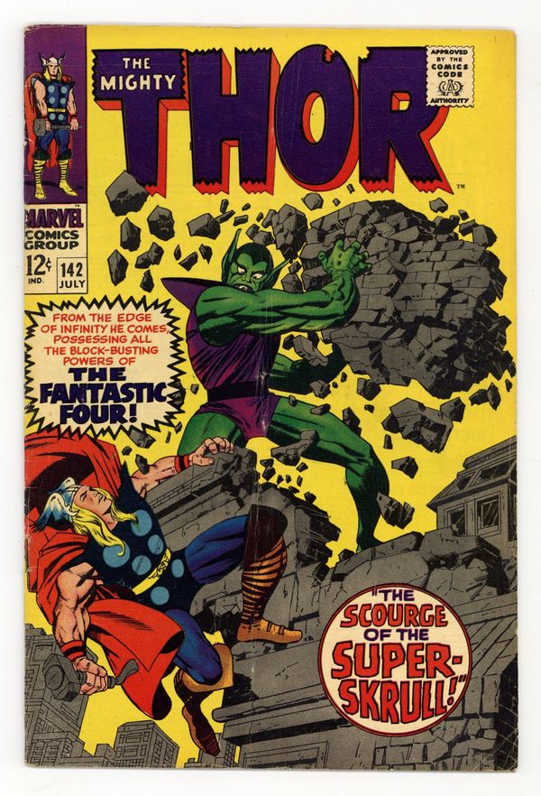 Ended Jun 24 2025 Winning Bid $16 Cover pencils by Jack Kirby, inks by Vince Colletta. "The Scourge of the Super-Skrull!", script by Stan Lee, pencils by Jack Kirby, inks by Vince Colletta; The Super-Skrull, influenced by Loki, attacks and is beaten by Thor; Meanwhile, Odin sends Sif and Balder to find the evil Enchanters in the land of Ringsfjord. Tale of Asgard: "We, Who Are About to Die...!", script by Stan Lee, pencils by Jack Kirby, inks by Vince Colletta; Mogul's Demon Riders attack Thor and his companions. 36 pgs., full color. $0.12. Cover price $0.12. Grade: GD/VG 3.0 explanation of grade Condition: Used (collectible)