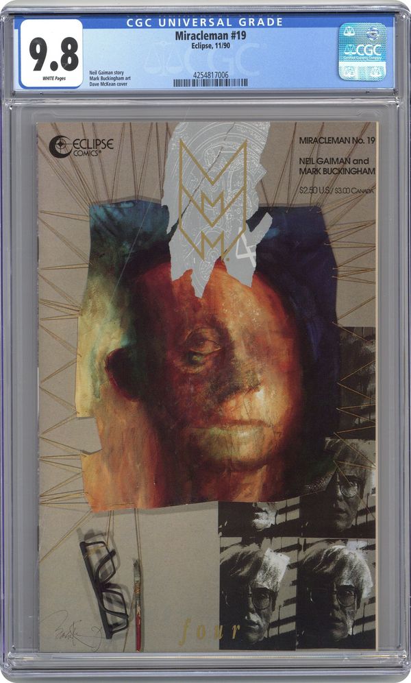 Ended Oct 16 2025 Bid History 7 bids Winning Bid $26 Cover by Dave McKean. Written by Neil Gaiman. Art by Mark Buckingham. In this issue: Mors, Andy Warhol, Dr. Gargunza and Winter Moran in "Notes From the Underground"! Plus: Mike Moran, April Lear, Kid Miracleman and Dickie Dauntless in the 2-page story "Retrieval 3"! 32 pages, full color. Cover price $2.50. Grade: CGC 9.8 explanation of grade Condition: Used (collectible)