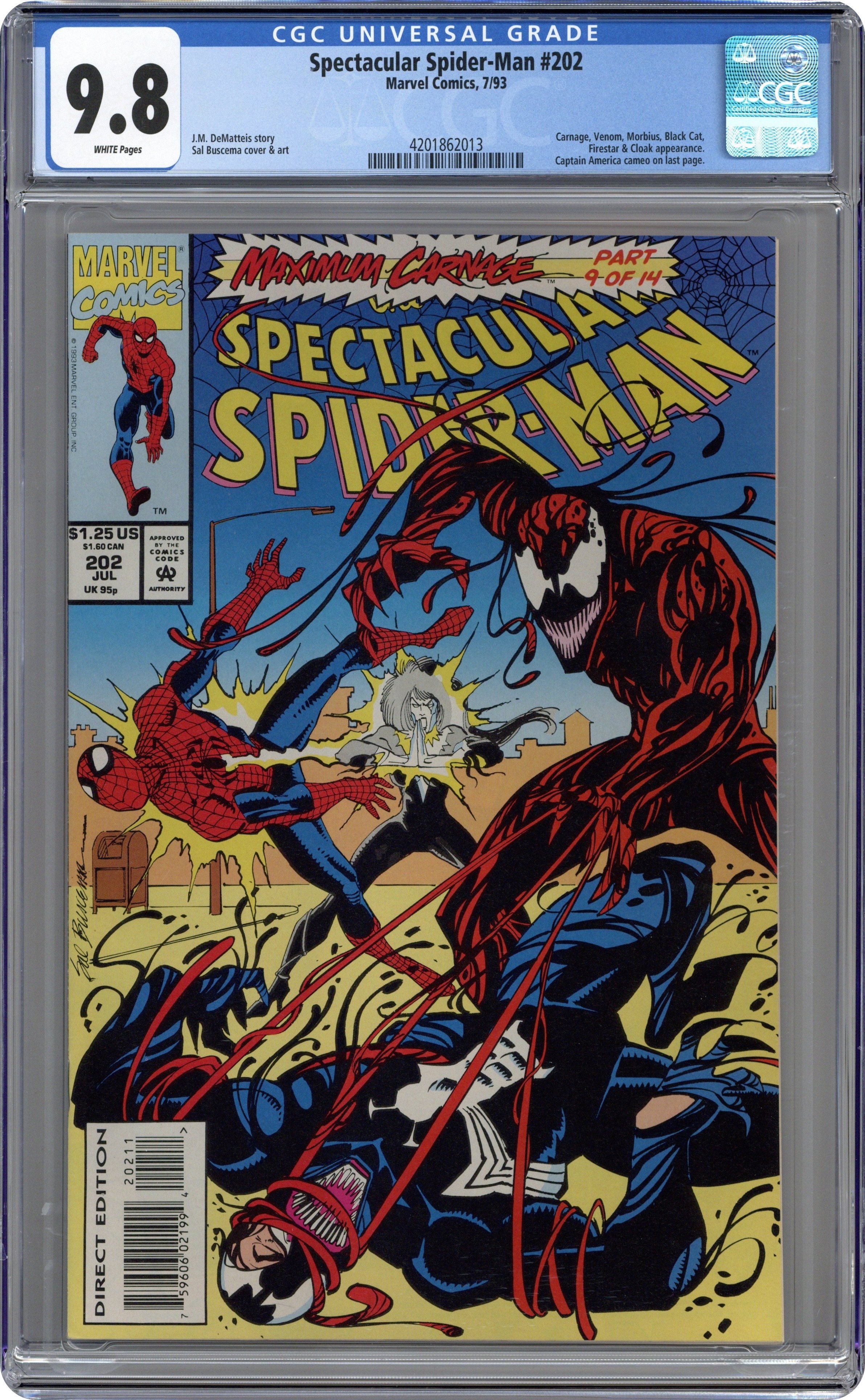 Tags: Marvel Legacy Numbering: Spectacular Spider-Man (part 202), Maximum Carnage (part 9), Carnage, Spider-Man, VenomSpectacular Spider-Man (1976 1st Series) 202 CGC 9.8