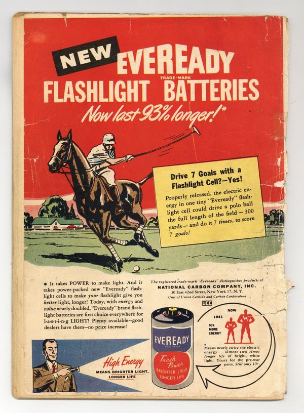 Cover pencils by Wayne Boring, inks by Stan Kaye. Toyman and the Gadgets of Greed, script by Don Cameron, pencils by John Sikela, inks by George Roussos; Superman & Toyman team up to capture the man who is framing him. Clark Kent's Most Dangerous Assignment, pencils by John Sikela; Perry fires Clark for cowardice, so he goes on a dangerous expedtion to prove his worth. Trick Play text story by Pat Farris. Lois Lane, Globe-Trotter, script by Don Cameron, pencils by John Sikela; Lois tries to go around the world in 80 days. Captain Tootsie stars in a one-page Tootsie Roll ad, "The Secret-Play Touchdown" (by C.C. Beck and Pete Costanza). 52 Pages, Full Color. Cover price $0.10. Grade: GD- 1.8 explanation of grade Condition: Used (collectible)