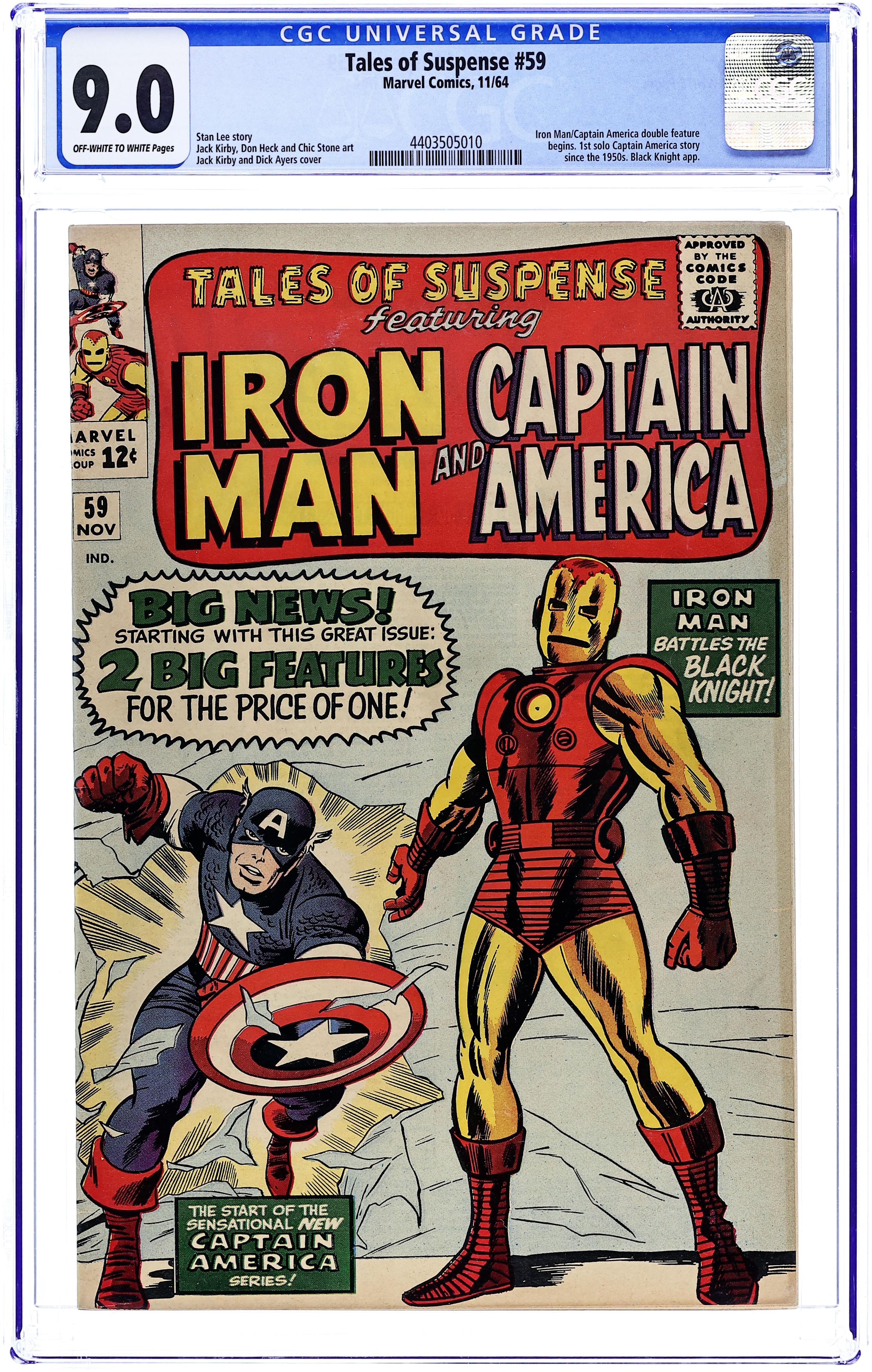 Tags: Marvel Legacy Numbering: Captain America (part 59), Marvel Legacy Numbering: Tales of Suspense (part 59), Captain America, Iron ManTales of Suspense (1959) 59 CGC 9.0