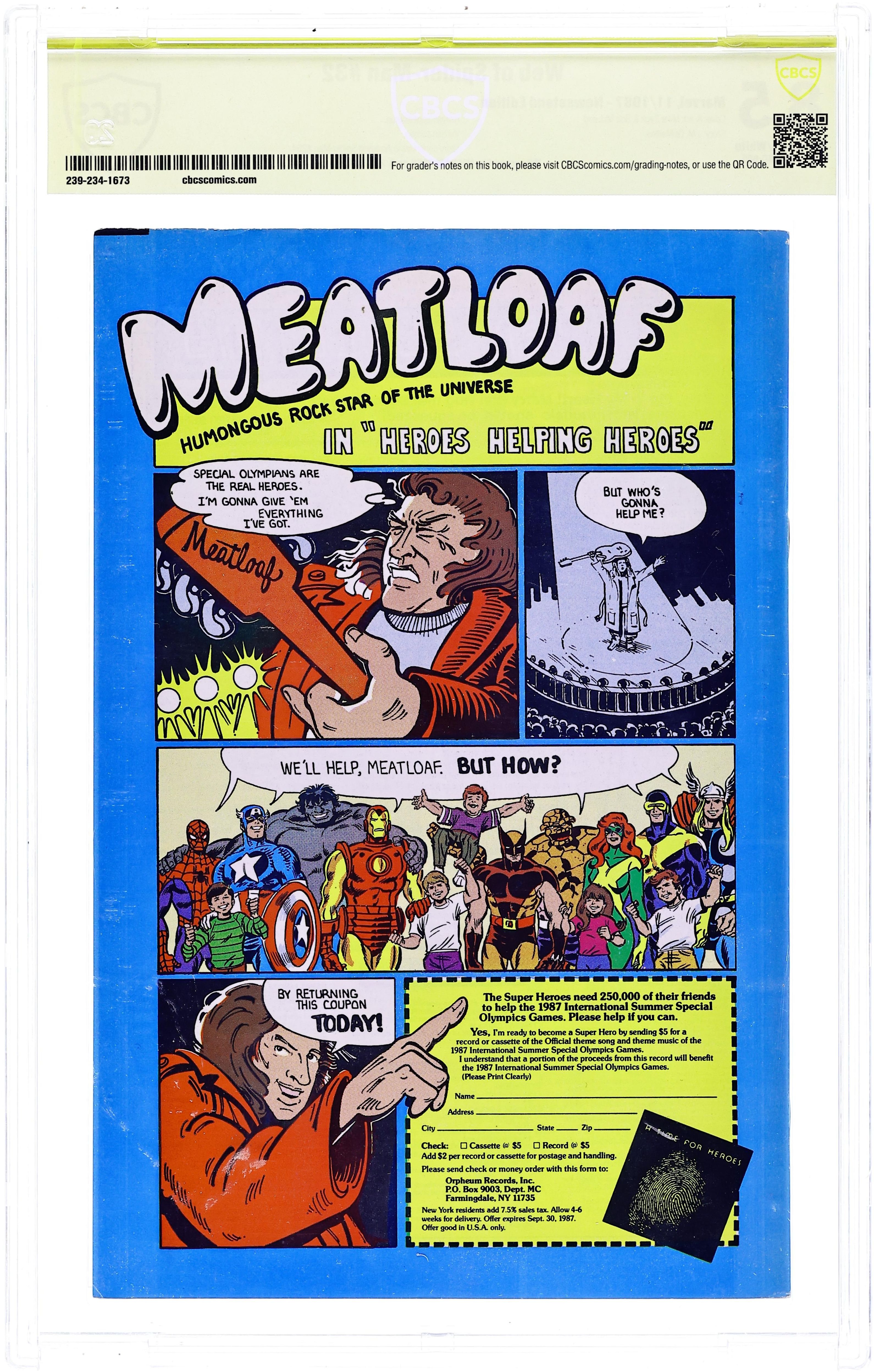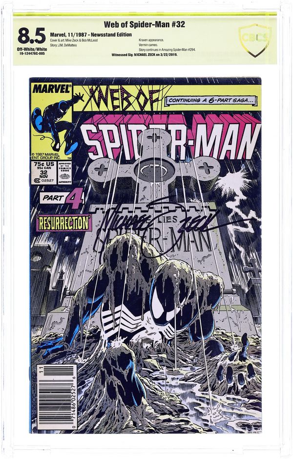 Web of Spider-Man (1985 1st Series) 32N CBCS 8.5 Witnessed Sig Zeck