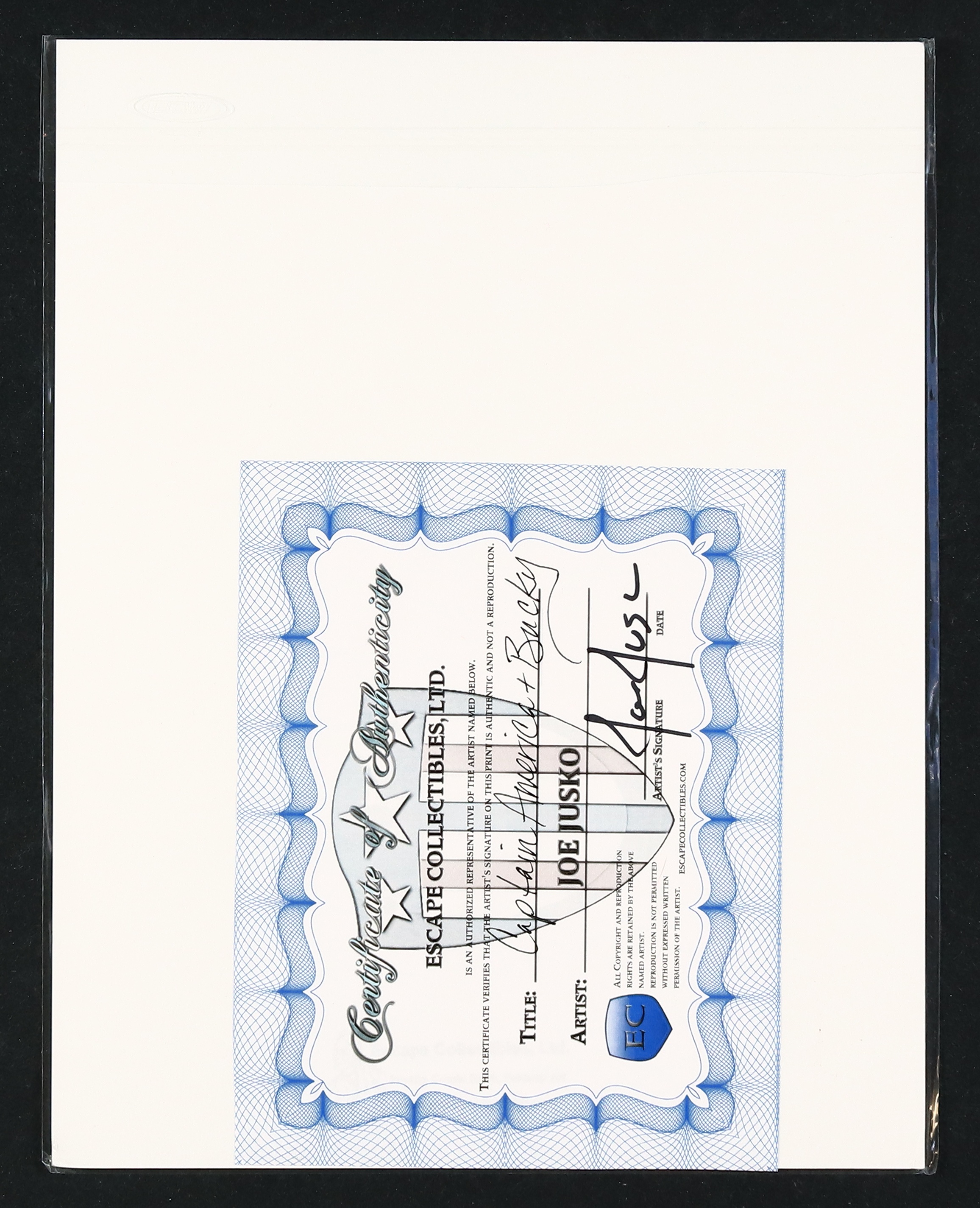 Signed by the artist with certificate of authenticity. from Escape Collectibles. High quality print on heavy stock. 8 1/2" x 11".