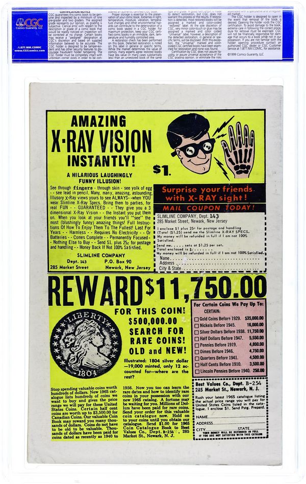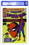 Ended Oct 14 2025 Bid History 21 bids Winning Bid $170 Cover art by Steve Ditko. Doctor Strange guest stars in an all-new 20-page story, "The Wondrous World of Doctor Strange!", script by Stan Lee, art by Steve Ditko; Xandu sends his two henchmen to retrieve half of the Wand of Watoomb from Dr. Strange; Spider-Man mistakes the henchmen for burglars and tries to stop them, leading to a team up between Spider-Man and Dr. Strange to stop Xandu's plan. Spider-Man, script by Stan Lee, art by Steve Ditko; Spider-Man rescues John Jameson, J. Jonah Jameson's son, from his malfunctioning space capsule; reprinted from Amazing Spider-Man 1. The Uncanny Threat of the Terrible Tinkerer!, script by Stan Lee, art by Steve Ditko; When Peter Parker discovers some alien modifications to a professor's radio he tracks down a group of aliens with plans to take over the Earth; reprinted from Amazing Spider-Man 2. Marked for Destruction by Dr. Doom!, script by Stan Lee, art by Steve Ditko; Dr. Doom tries to trick Spider-Man into helping him defeat the Fantastic Four. Ditko also provides 5 pages of new pin-ups (Spider-Man's famous foes). Finally, there are three reprints from Amazing Spider-Man 1 ("Spider-Man"), 2 ("The Uncanny Threat of the Terrible Tinkerer!"), and 5 ("Marked for Destruction by Dr. Doom!"). Giant 76-page special! Reprinted in Marvel Tales # 167. 76 pgs., full color. Cover price $0.25. Grade: CGC 6.5 explanation of grade Condition: Used (collectible)