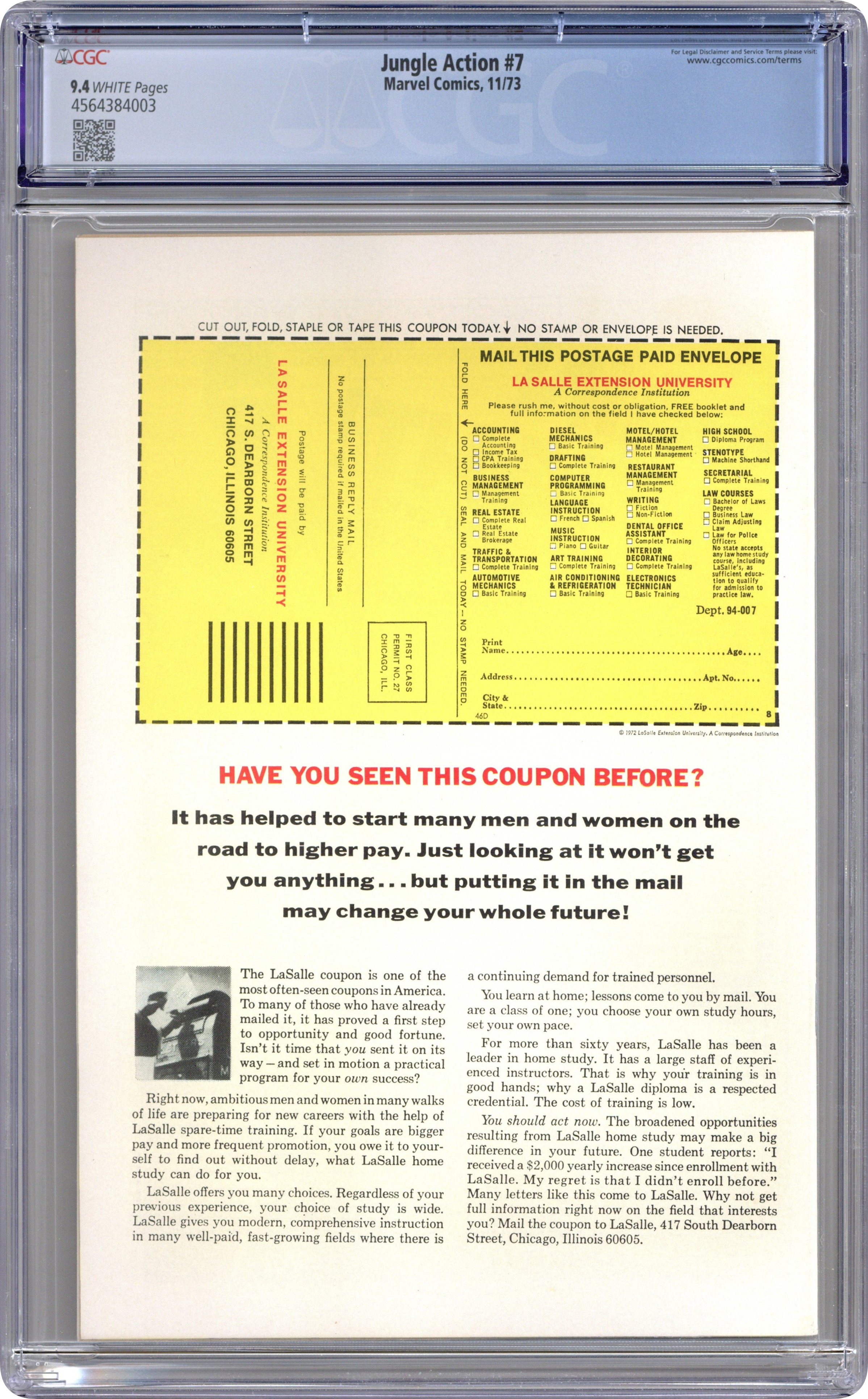 Jungle Action (1972 Marvel) 7 CGC 9.4