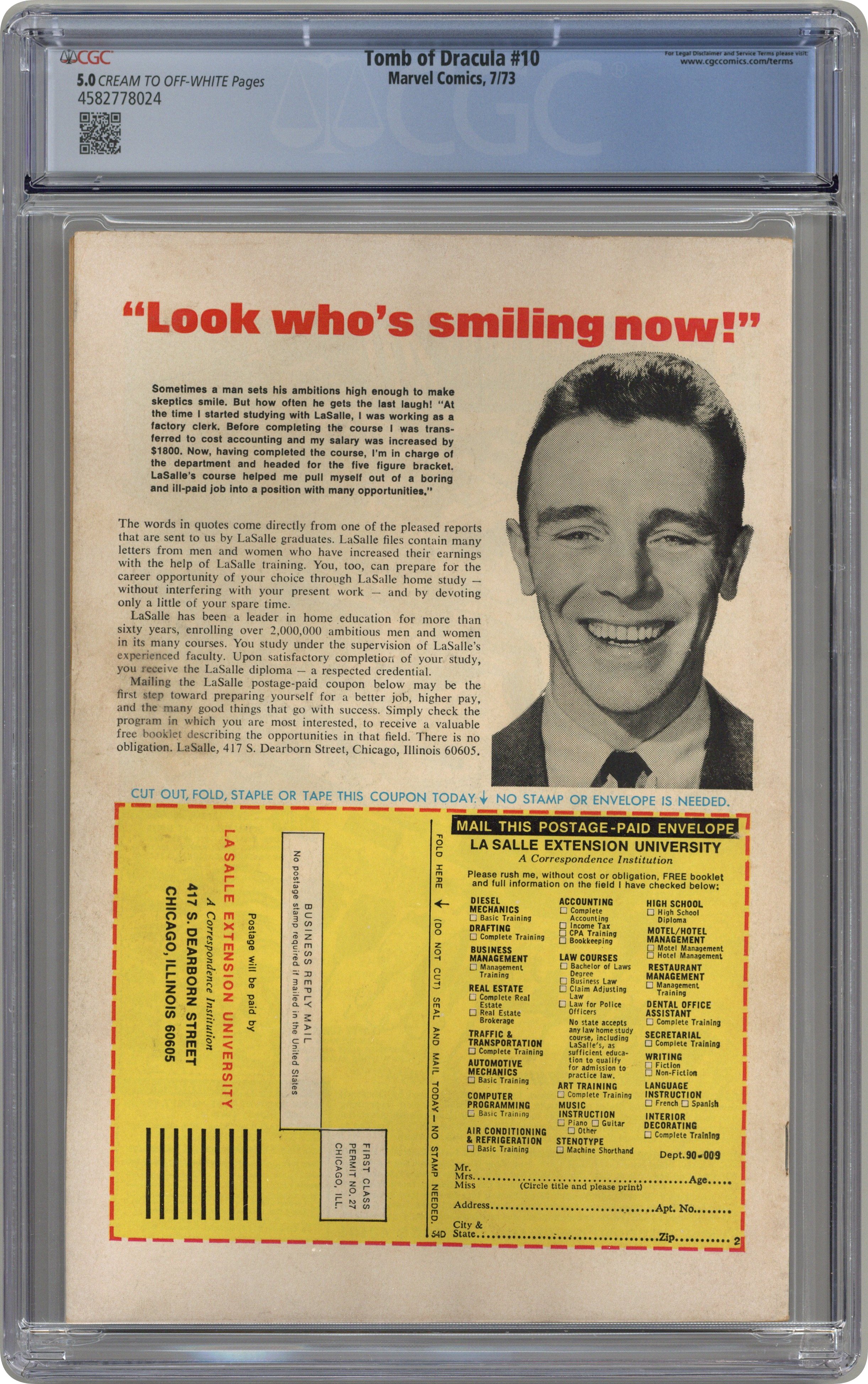 Tomb of Dracula (1972 1st Series) 10 CGC 5.0