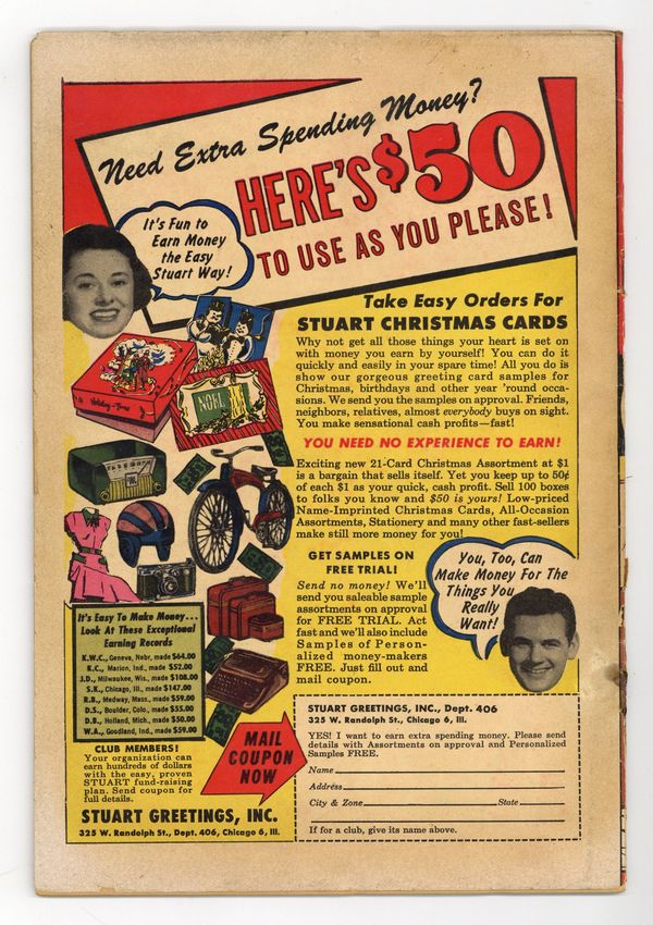 Ended Nov 3 2025 Bid History 10 bids Winning Bid $16 "Hair Raid," art by George Frese; Jughead hopes to cash in on the chlorophyll craze by marketing a hair tonic he claims contains chlorophyll. "Swim for Your Supper," pencils by Samm Schwartz; Veronica invites Jughead to a weenie roast she's holding, but only if he agrees to swim after. "No Blood, Bud," art by Dave Berg; Mr. Weatherbee's first aid lecture takes a toll on Reggie. "Nothing But the Sleuth," pencils by George Frese; Jughead starts a private investigator business and Betty hires him to find out if Veronica is two-timing Archie. "Puppy Love"; Wilbur risks his life to save Laurie's arm-candy dog from a car. "Whiff All My Heart," pencils by Joe Edwards, inks by Terry Szenics; Coach tries to demonstrating proper hitting form to his team. "It's for Reel," pencils by George Frese, inks by Joe Edwards; Jughead finds a 3-D film a little too realistic. "Ice Cream, You Scream," art by Tom Moore; Jughead suggests Pop hold an ice cream eating contest as a means of increasing his business. "Dare Today Gone Tomorrow," script by Frank Doyle, art by Bill Vigoda; Jughead only gets away with sitting with Midge because Moose thinks he is Souphead and Moose doesn't mangle children. "Hay There," pencils by Harry Lucey; Ginger mysteriously lets Bunny bully her out of a date with Tommy. "The Bear Facts," pencils by Bill Vigoda; Jughead reassures his fellow hikers that they're safe from bears. "Dog-Gone," art by Samm Schwartz; Betty proves through logic that the dog didn't steal Jughead's steak. "Party of the First Part," pencils by Bill Vigoda; The gang prepare a surprise party for Jughead at the behest of a mystery planner. 36 pgs., full color. Cover price $0.10. Grade: FR/GD 1.5 explanation of grade Condition: Used (collectible)