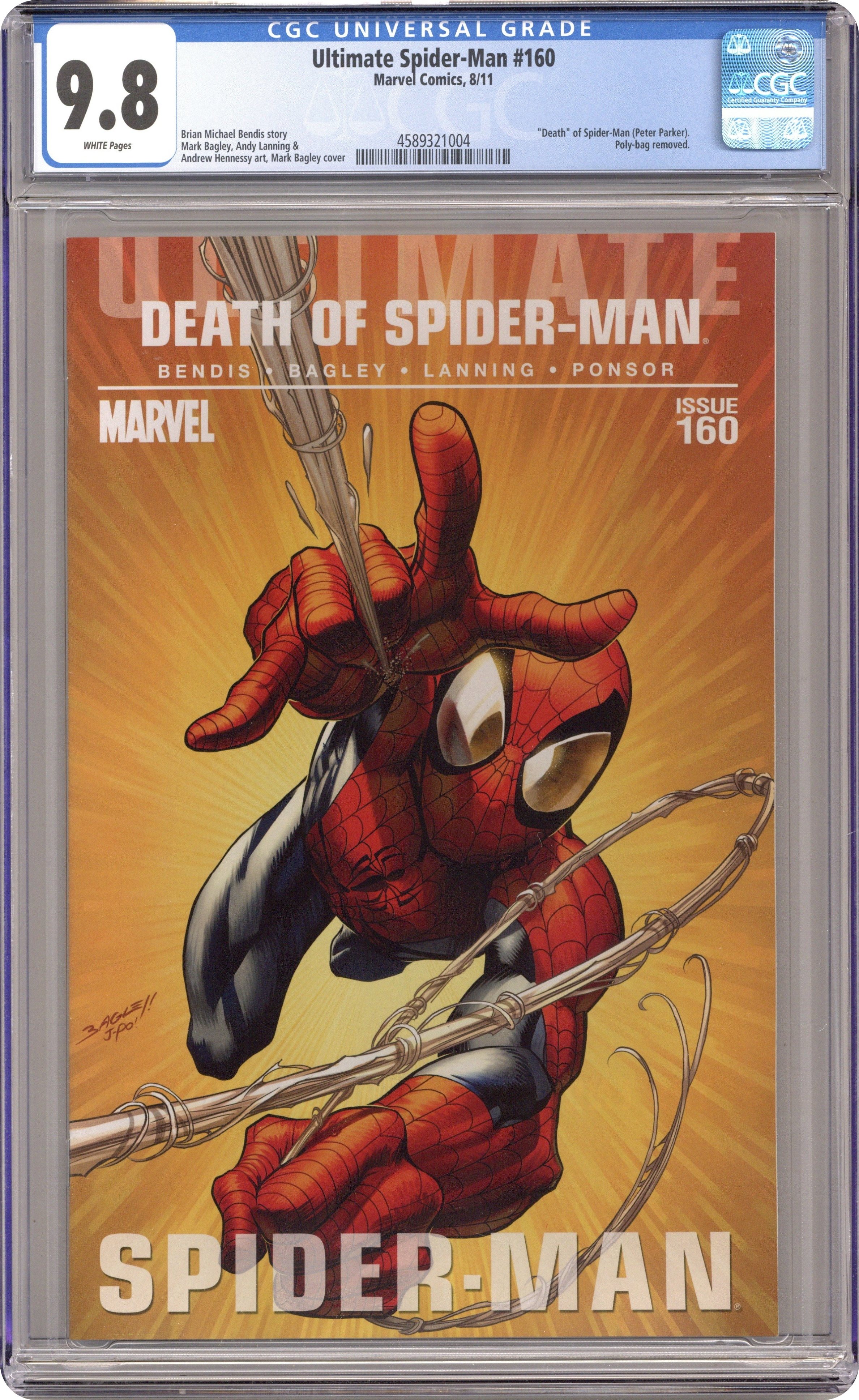 Ultimate Spider-Man (2009 2nd Series) 160AU CGC 9.8 Bagley Variant