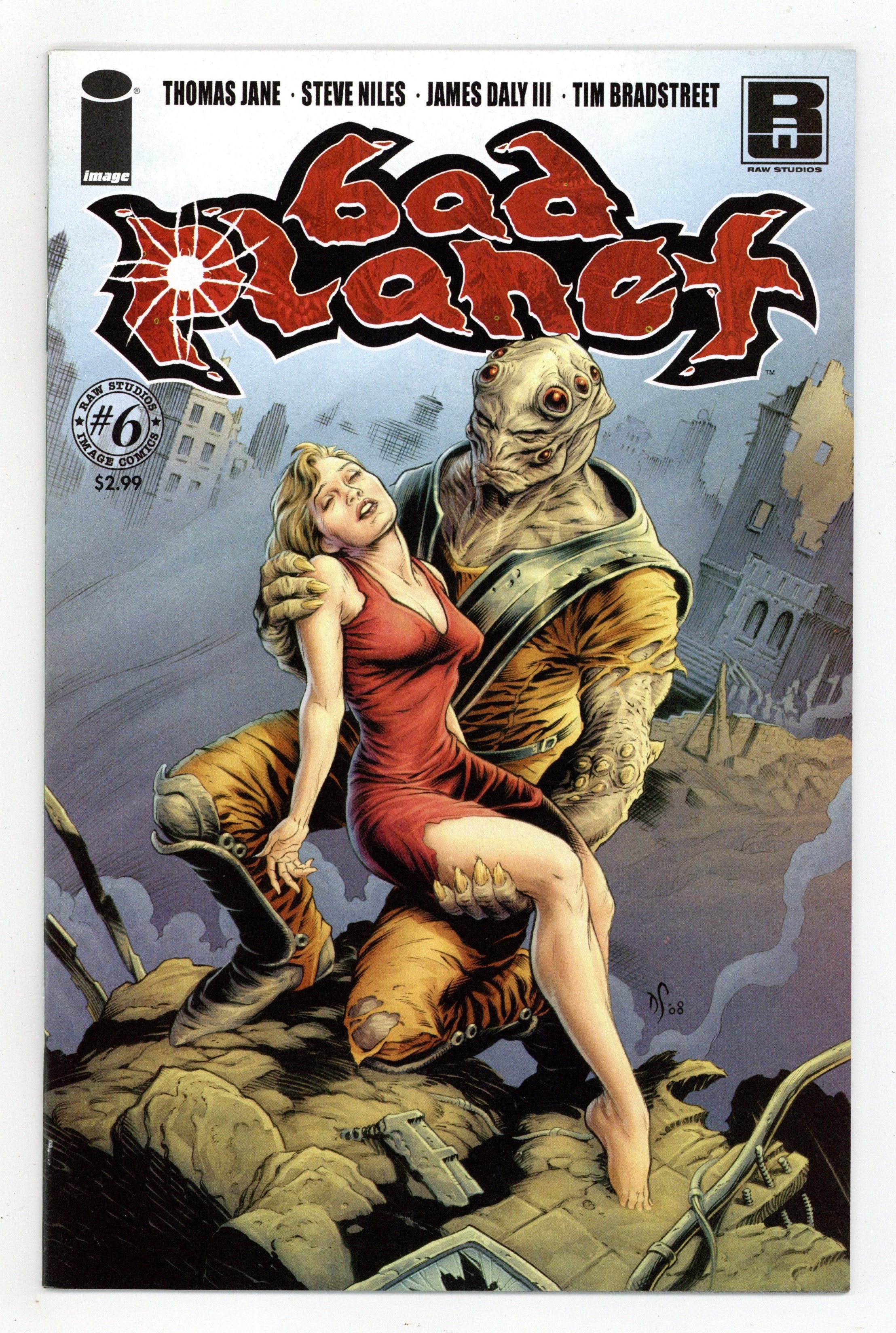THE FIRST HALF OF THE BAD PLANET SAGA CONCLUDES! It's a spine-tingling cliffhanger that will leave you with your hair standing on end, praying that the Earth has a quick and painless end. Plus Nikola Tesla's inventions set the stage for an unwitting hero. RETAILER WARNING: MAY NOT BE SUITABLE FOR ALL AGES Cover price $2.99. Grade: VF- 7.5 explanation of grade Condition: Used (collectible)