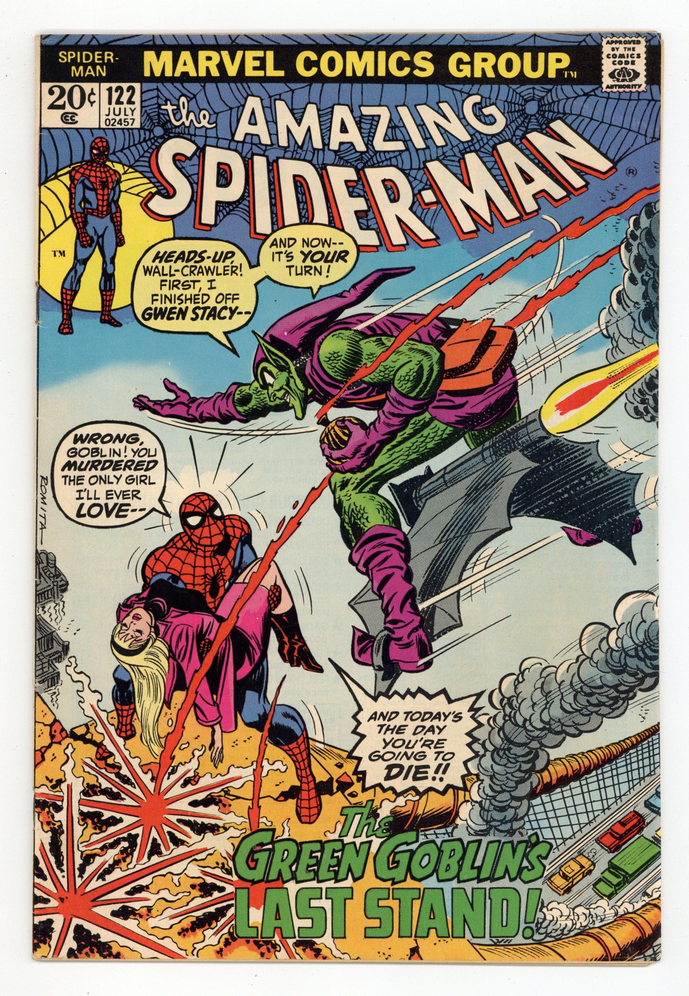 Ended Jul 15 2025 Bid History 14 bids Winning Bid $260 Death of the Green Goblin (aka Norman Osborn) in "The Goblin's Last Stand!" Part 2 of 2. Script by Gerry Conway. Pencils by Gil Kane. Inks by John Romita and Tony Mortellaro (backgrounds). Cover by John Romita. In unfathomable fashion atop the Brooklyn Bridge, Gwen Stacy perished at the hands of the Green Goblin. Spider-Man is devastated. And he furiously lashes out at the goblin, but the purple and green-clad killer gets away! However, a while later, the wall-crawler receives a tip from Joe Robertson about Norman Osborn's whereabouts. And in an abandoned and decrepit warehouse, the Amazing Spider-Man and the Green Goblin fight for the final time! At the end of their epic battle, Peter Parker painfully realizes that revenge is bittersweet. The passing of the goblin won't bring back Gwen. He must find a way to move forward with his life. Perhaps Mary Jane Watson will help. Cameo appearances by Harry Osborn and J. Jonah Jameson. (Notes: The stunning death scene of the Green Goblin inspired a similar moment in the2002 Spider-Man movie. This issue was reprinted in Marvel Tales #99 and again in issue 192.) 36 pages. Cover price $0.20. Grade: FN- 5.5 explanation of grade Condition: Used (collectible)