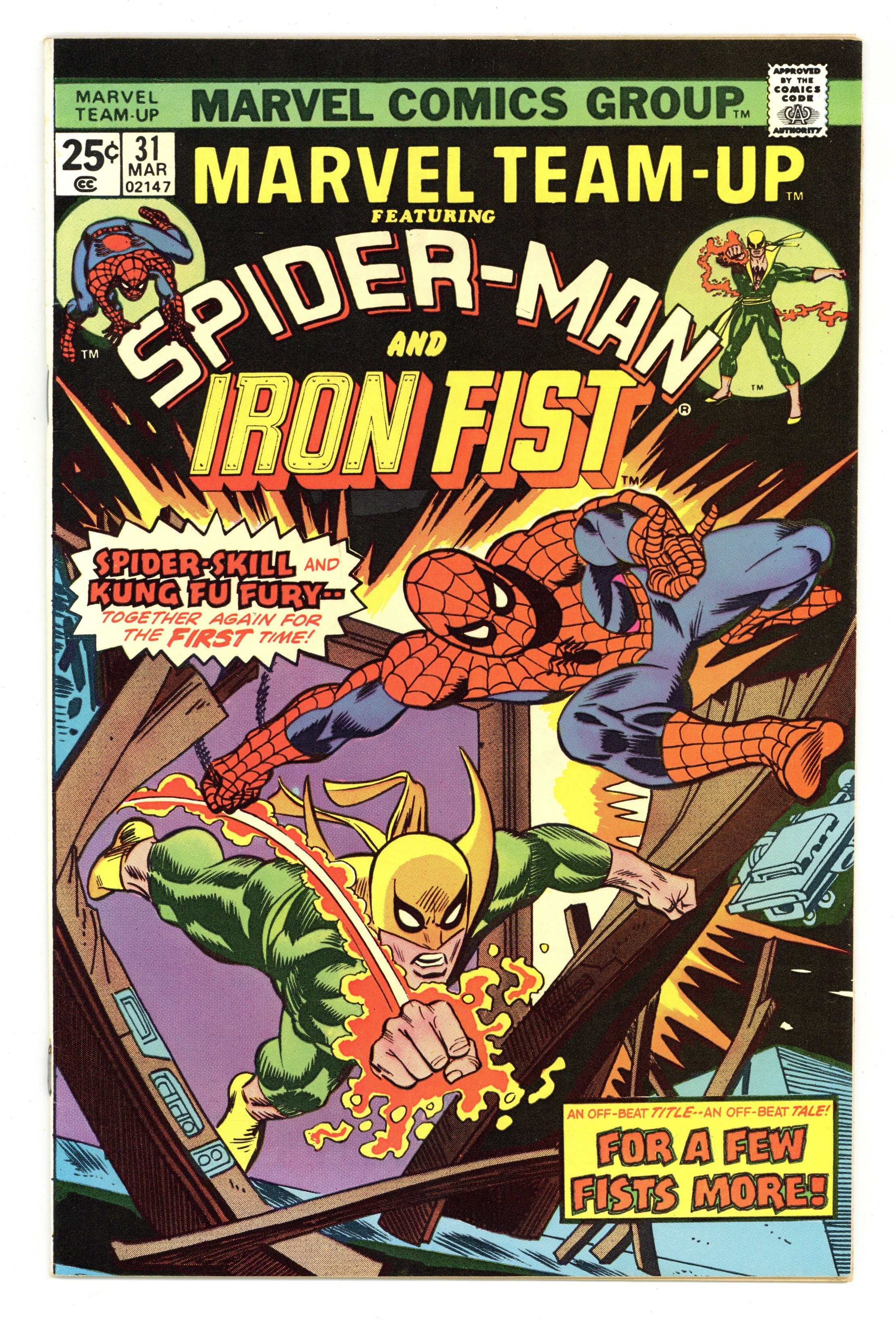 Ended Jul 3 2025 Winning Bid $26 "For A Few Fists More!" Guest-starring Spider-Man and Iron Fist. Script by Gerry Conway. Pencils by Jim Mooney. Inks by Vince Colletta. Cover by Gil Kane and Frank Giacoia. Iron Fist and Spider-Man battle Drom the Backwards Man! If Spider-Man and the Living Weapon can reverse time, they will straighten out the backwards man! (Notes: This issue features the first meeting between Iron Fist and Spider-Man, and was reprinted in Marvel Treasury Edition #18. The letters page includes a letter from comics writer Ralph Macchio.) This issue 36 pages. Cover price $0.25. Grade: FN+ 6.5 explanation of grade Condition: Used (collectible)