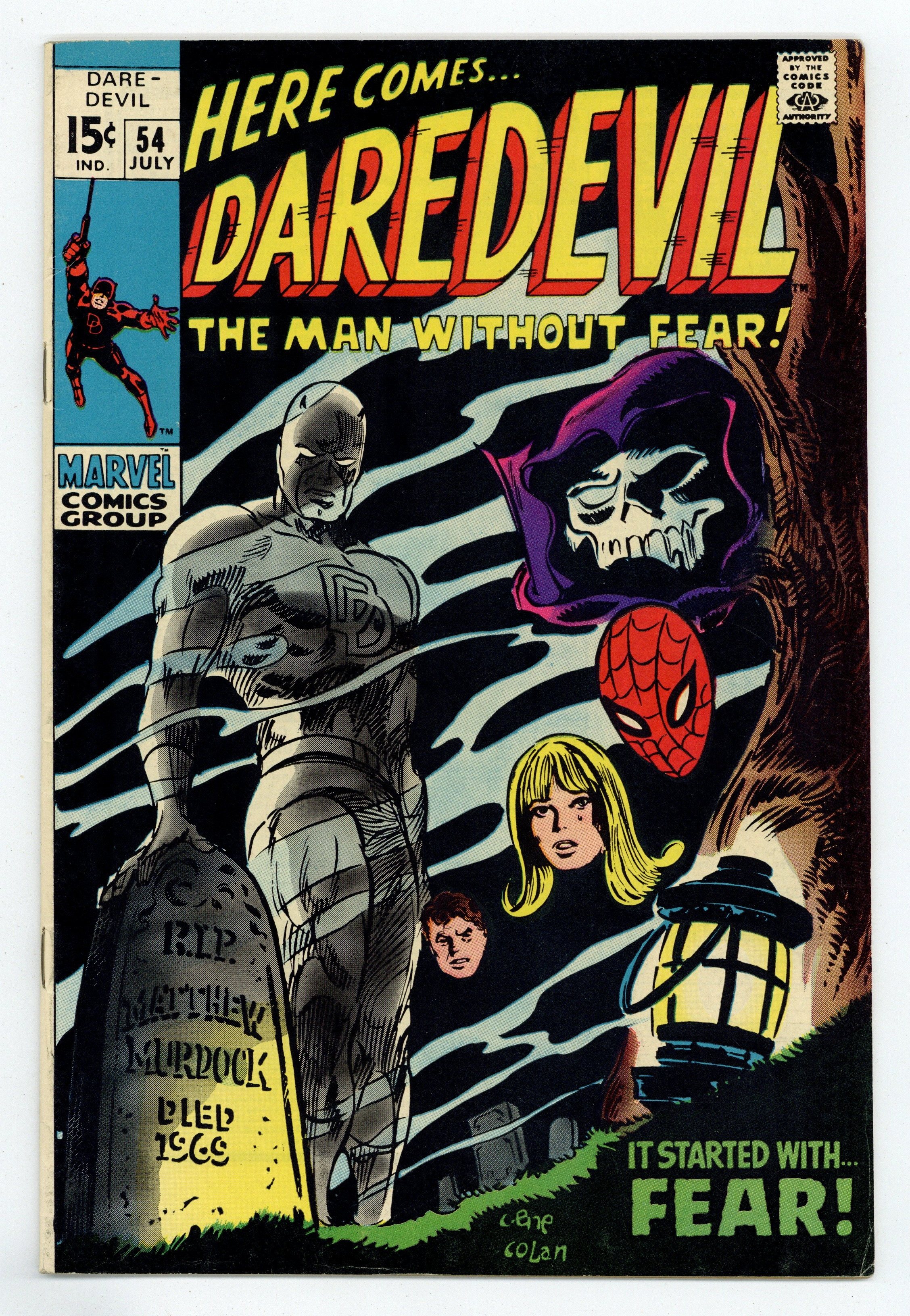 Ended Jul 28 2025 Bid History 8 bids Winning Bid $26 First 15-cent issue. Cover art by Gene Colan. Call Him Fear, script by Roy Thomas, pencils by Gene Colan, inks by George Klein; A new Mr. Fear challenges Daredevil to a public brawl and DD is branded a coward when he freaks out during the fight; Matt Murdock fakes his own death; Daredevil flies a plane; Spider-Man appearance. 36 pgs. Cover price $0.15. Cover price $0.15. Grade: FN- 5.5 explanation of grade Condition: Used (collectible)