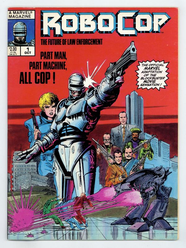 Ended Jul 28 2025 Bid History 10 bids Winning Bid $17 Official Marvel adaptation of the blockbuster movie sensation! Written by Bob Harras. Art by Javier Saltares, Alan Kupperberg and Tony DeZuniga. Cover by Mark Texeira. Part man, part machine, all cop! Step into the future and meet RoboCop, the half-man, half-machine cyborg policeman. But while many things may be different in the future, criminals are still as dangerous as ever! A Marvel Magazine. NOTE: While Direct Editions have a OCT cover date and Newsstand Editions have a NOV cover date, they are treated and sold as the same. 48 pages, B&W. Cover price $2.00. Grade: FN- 5.5 explanation of grade Condition: Used (collectible)