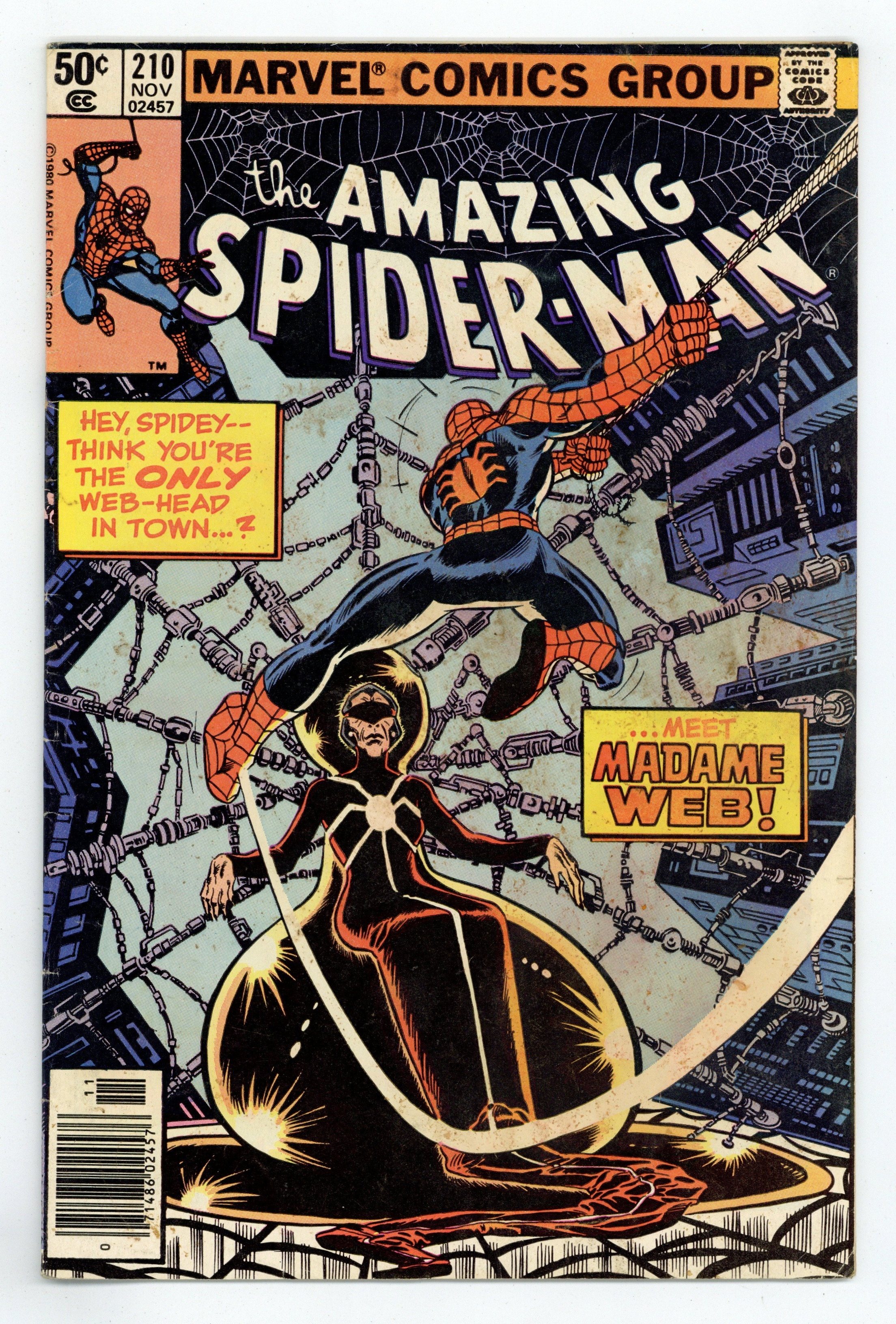 Ended Jul 28 2025 Bid History 8 bids Winning Bid $18 Newsstand Edition. "The Prophecy of Madame Web!" First appearance of Madame Web. Script by Denny O'Neil. Art by John Romita Jr. (breakdowns) and Joe Sinnott (finishes). Cover by John Romita Jr. and Al Milgrom. Masked gunmen barge into the board room of the Daily Globe and kidnap its publisher K.J. Clayton! Fortunately though, the web-slinger is nearby and gives chase! The wall-crawler doesn't catch the criminals, but he does catch a clue! A mysterious clairvoyant called Madame Web is somehow connected to the victim! After befriending the aging soothsayer and heeding her advice, Spider-Man rushes off to the rescue! Can the web-slinger find the missing publisher and get the Daily Globe back in circulation? Cameo appearance by J. Jonah Jameson. (Notes: Peter Parker ends his employment with the Daily Globe. Madame Web appears next in Amazing Spider-Man 216. John Romita Jr. begins his three-and-a-half year run as the penciler of the Amazing Spider-Man title.) 36 pages, full color. Cover price $0.50. Grade: GD 2.0 explanation of grade Condition: Used (collectible)