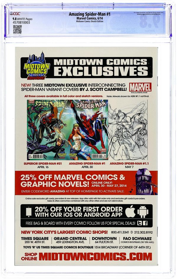 Tags: Spider-ManAmazing Spider-Man (2014 3rd Series) 1MIDTOWN.B CGC 9.8 Campbell Midtown B&W Variant