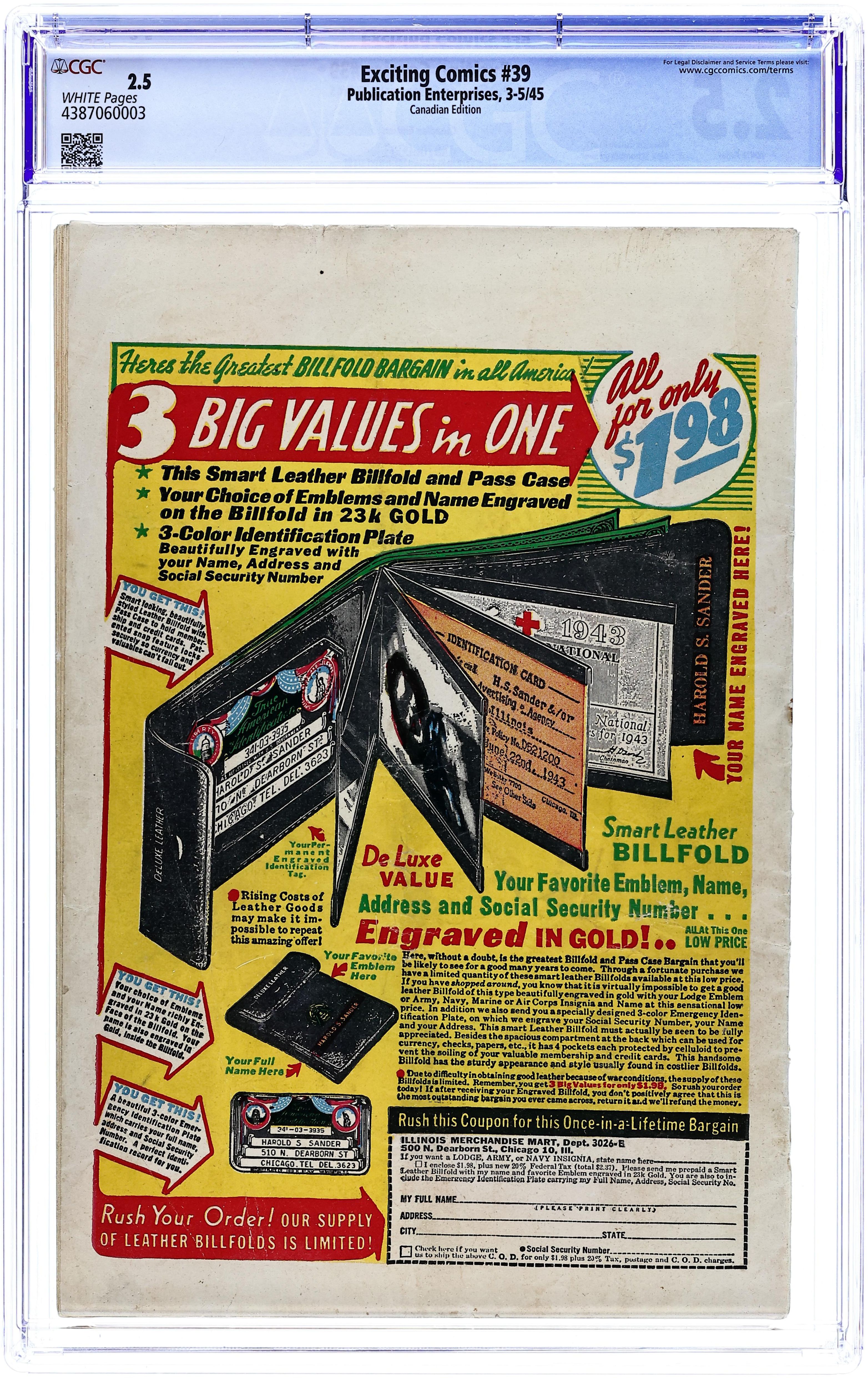 Published 1945 by Better Publications.Exciting Comics (1948) Canadian 39 CGC 2.5