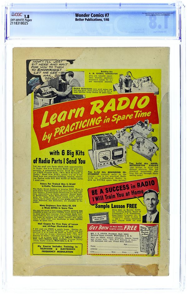 Published Jan 1946 by Great Publications.Wonder Comics (1944 Great) 7 CGC 1.8