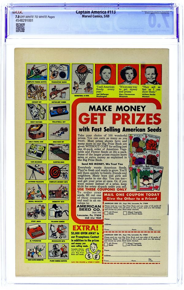 Tags: Marvel Legacy Numbering: Captain America (part 113), Captain AmericaCaptain America (1968 1st Series) 113 CGC 7.0