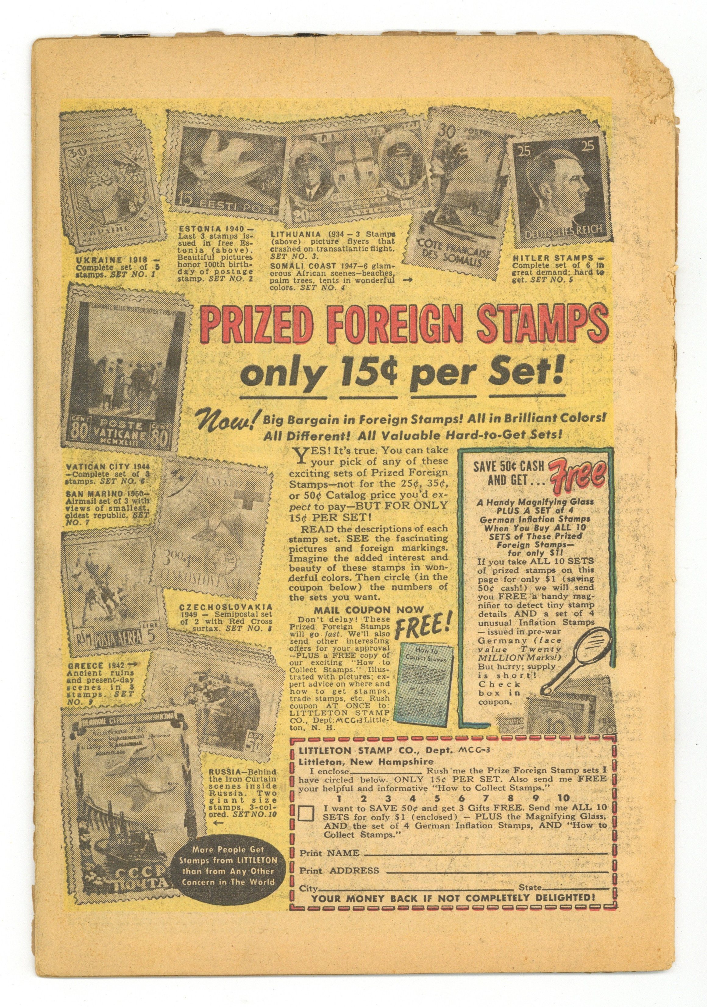 Cover by Carl Burgos. Written by Joe Gill, Don Rico and unknown. Art by Carl Burgos, John Romita, Sr. and Bill Everett. In this issue: The Human Torch (Jim Hammond), Toro (Thomas Raymond) and the Vulture (Isidoro Scarlotti) in a story by Joe Gill and Carl Burgos; Captain America and Bucky in "Captain America Turns Traitor!" by Don Rico and John Romita, Sr.; the Sub-Mariner in a story with art by Bill Everett; and "Pursuit" text story. 36 pages, full color. Cover price $0.10. Grade: PR 0.5 explanation of grade Condition: Used (collectible)