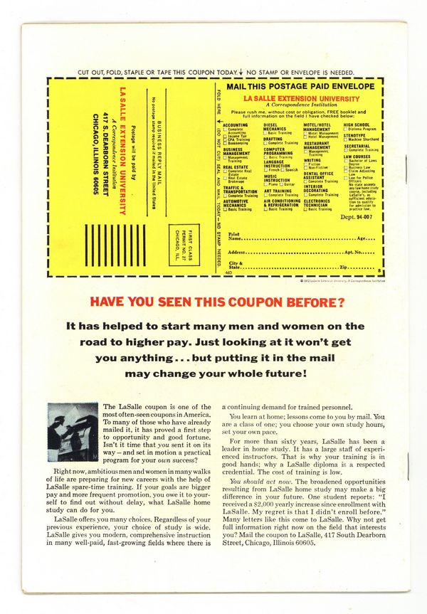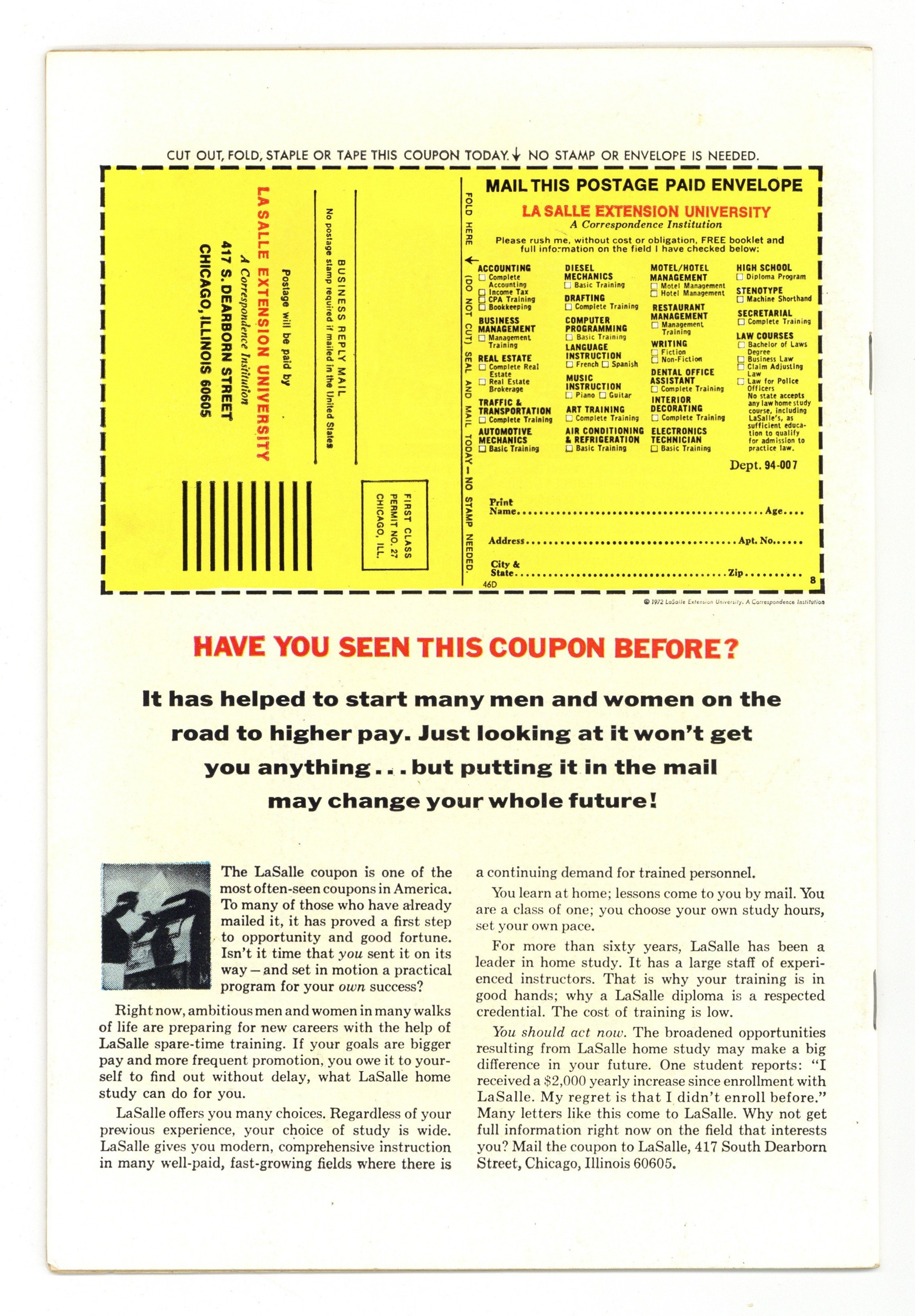 Written by Steve Englehart and Jim Starlin. Art and cover by Jim Starlin and Al Milgrom. Shang Chi, making his first appearance, is a master of martial arts and the son of Fu Manchu, a Chinese mandarin and scientist. Fu Manchu sends Shang Chi to England in order to assassinate the evil Dr. Petrie for the common good. Shang Chi reluctantly agrees, but after the deed is done he is confronted by Sir Denis Nayland Smith, a former British intelligence officer who tells him the truth about Fu Manchu; that he is a nearly immortal evil mastermind. Shang Chi travels back to his father's secret lair in New York and renounces him. Text articles by Roy Thomas and Englehart about the creation of Shang-Chi. Ad for Astonishing Tales #21. A brief obituary for Syd Shores. Ad for the Marvel fan club FOOM (Friends of Ol' Marvel). 36 pages, full color. $0.20. Cover price $0.20. Grade: FN 6.0 explanation of grade Condition: Used (collectible)
